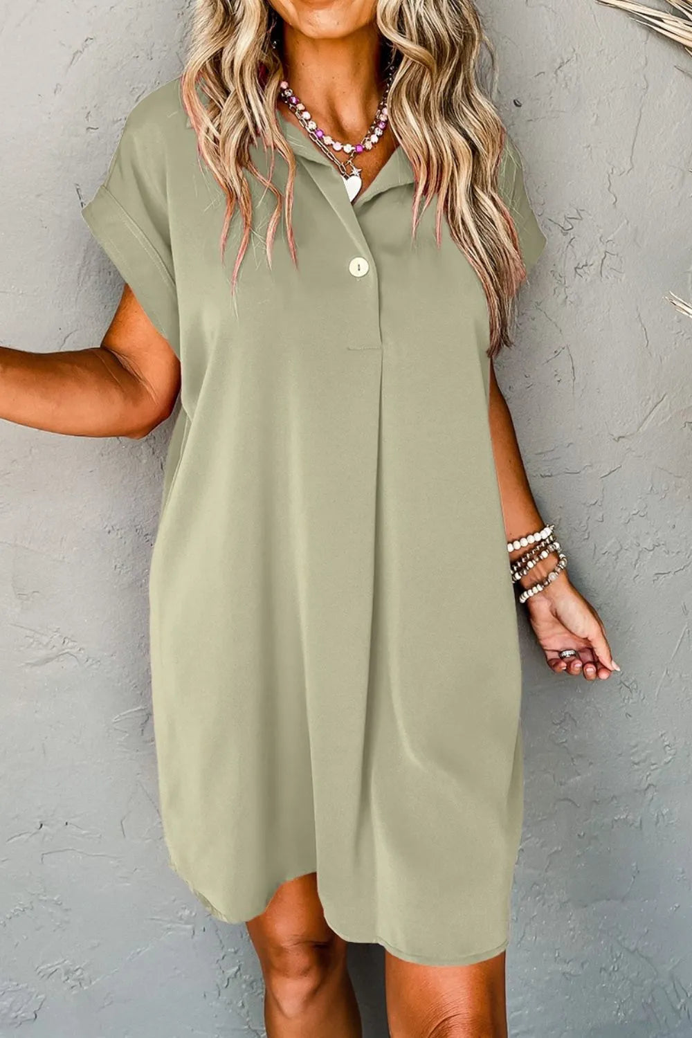 Home/All/Collared Neck Short Sleeve Mini Dress