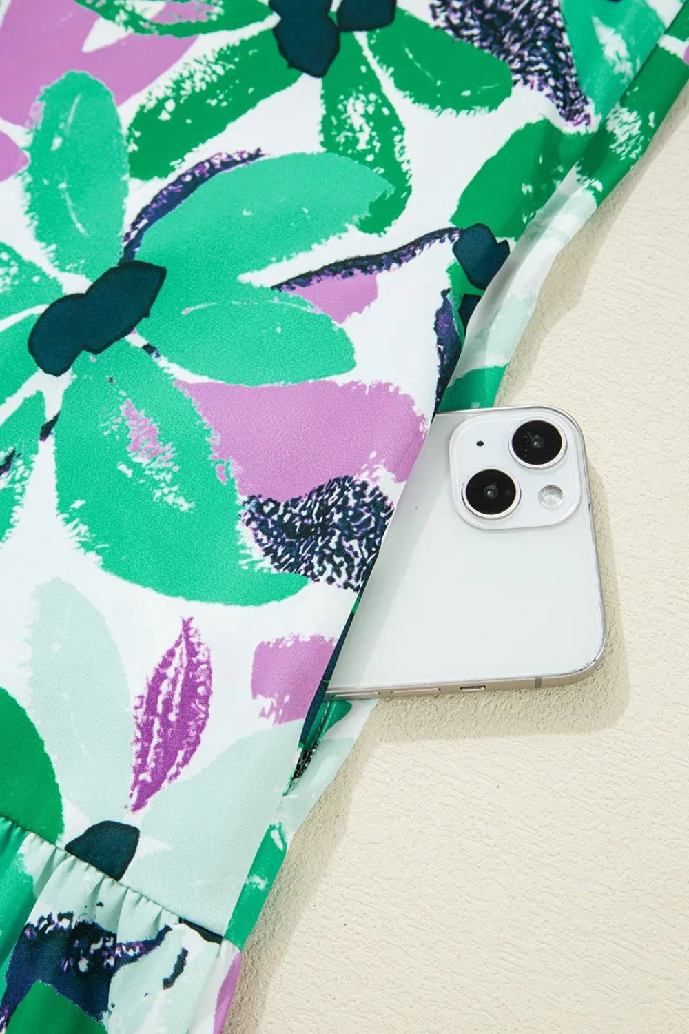 Home/All/Floral Print Shirred Square Neck Loose Fit Mini Dress