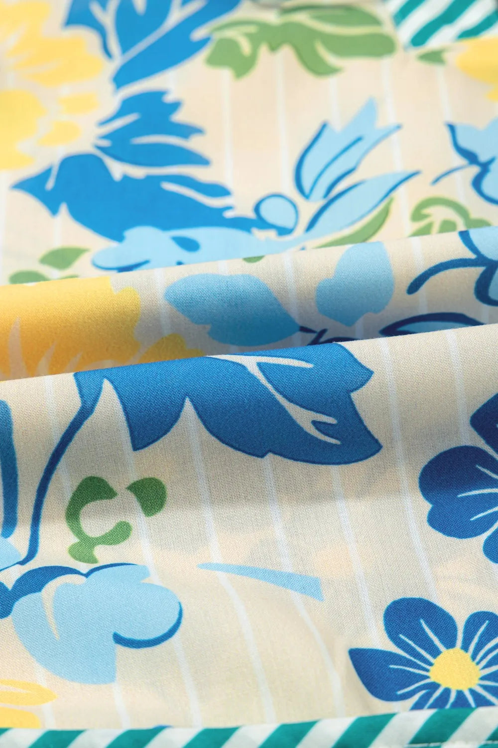 Home/All/Floral Striped Trim Puff Short Sleeve Dress
