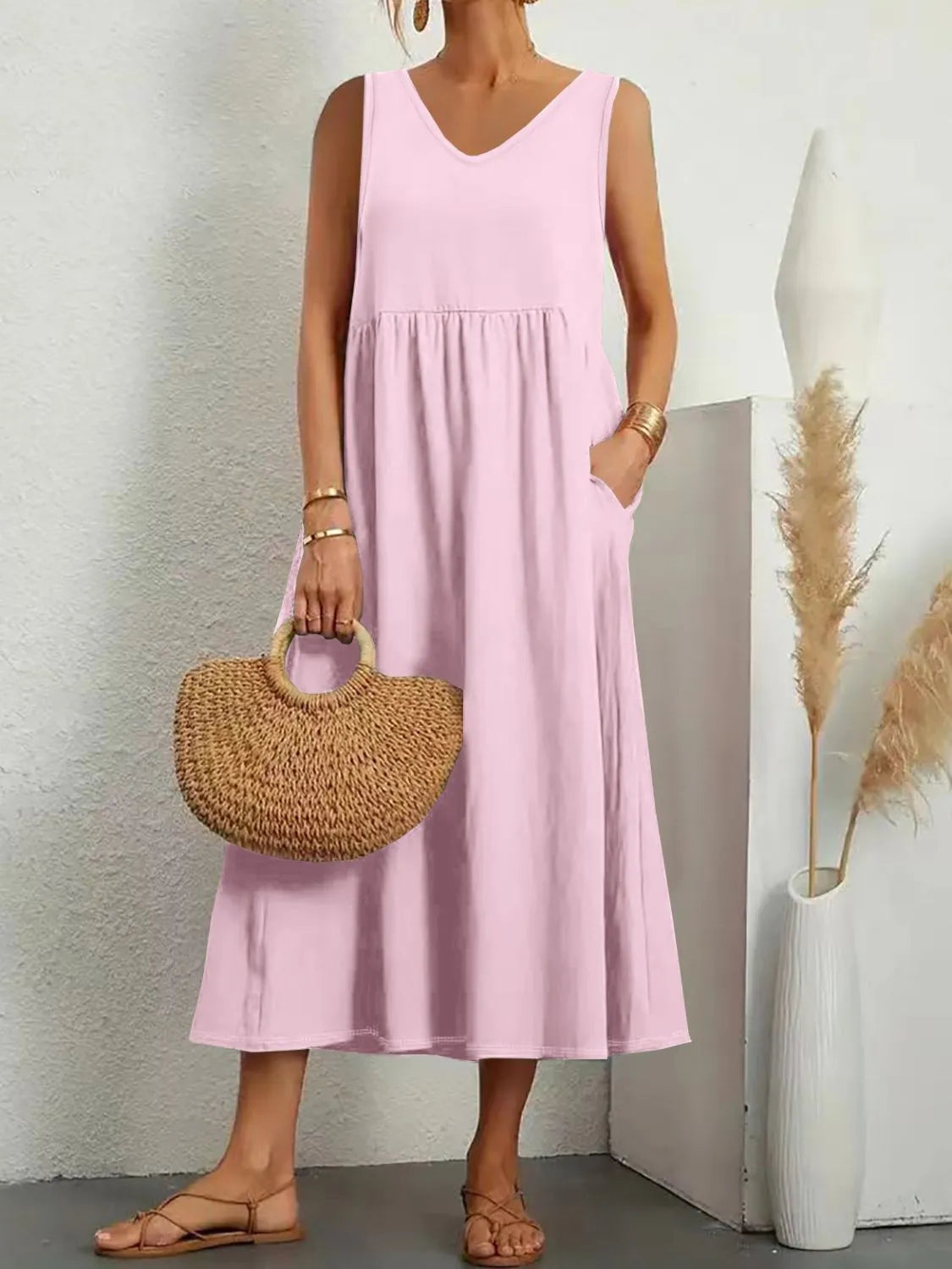 Full Size V-Neck Sleeveless Dress with Pockets Plus Size