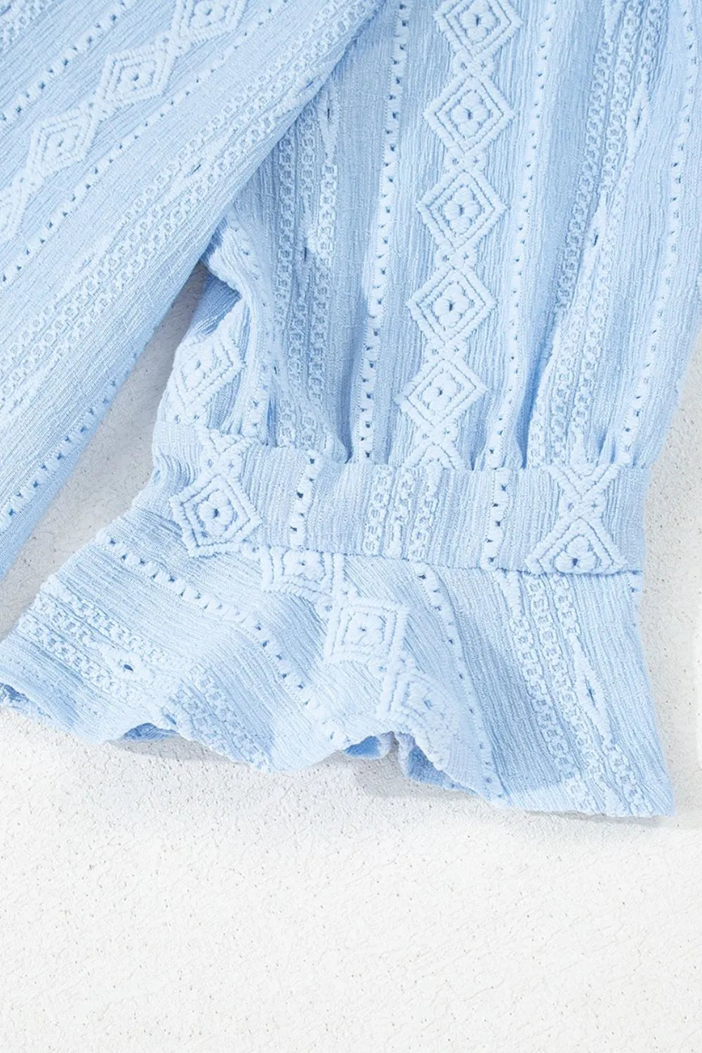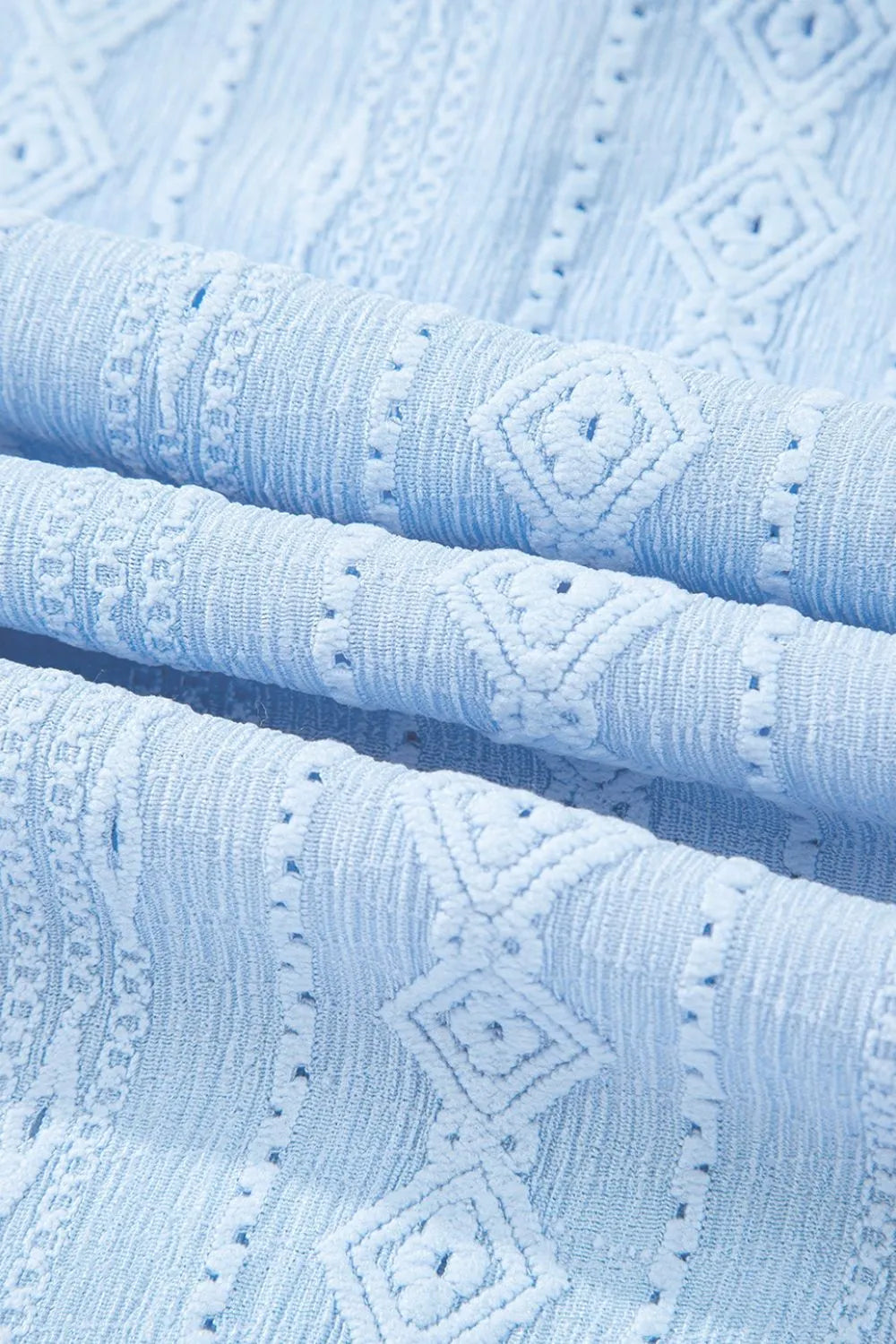 Jacquard Texture Flared Short Sleeve Notched Neck Mini Dress