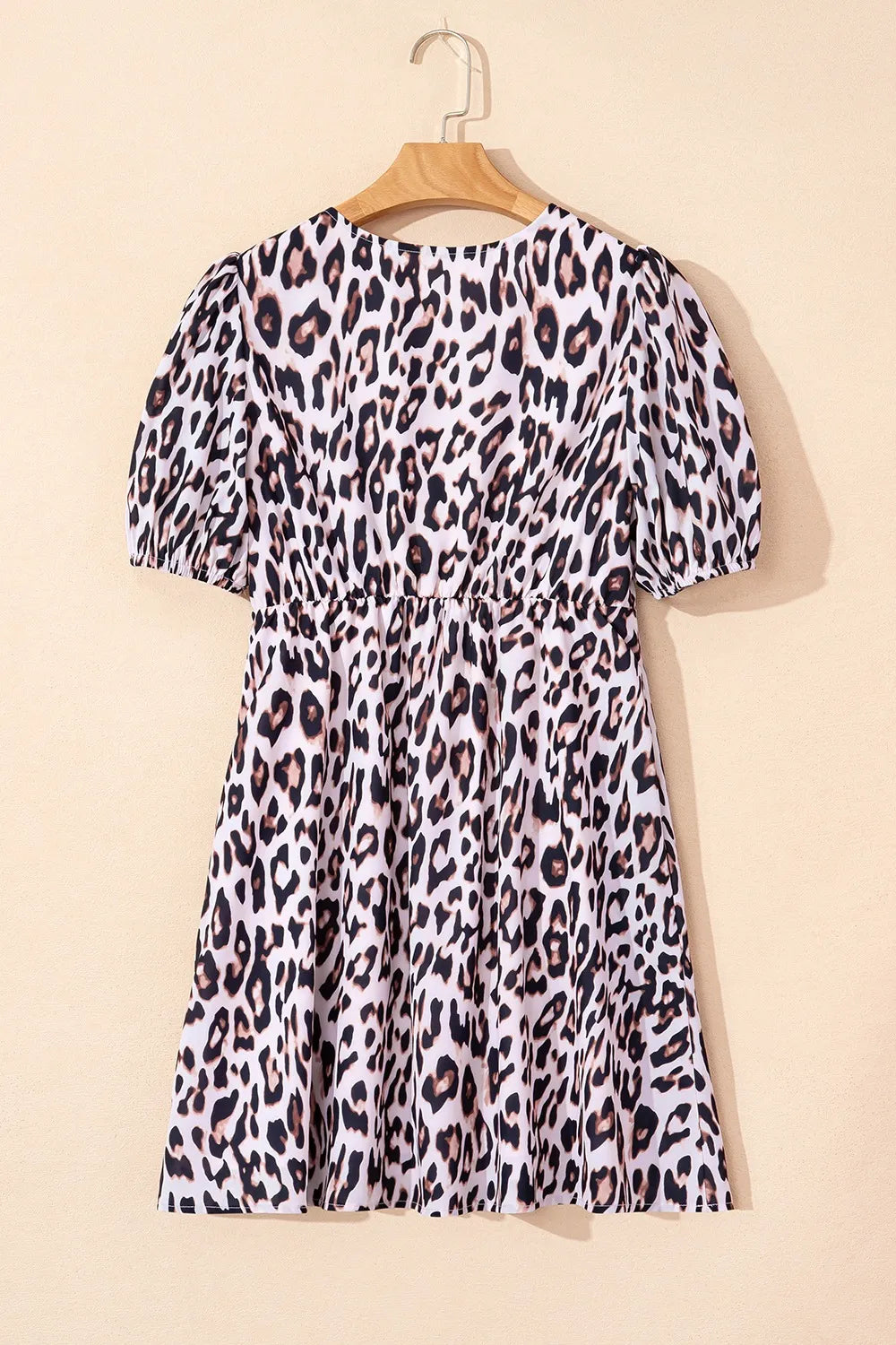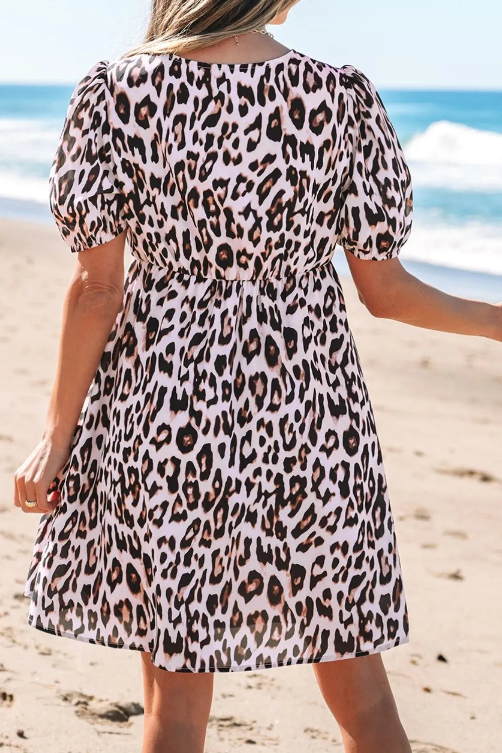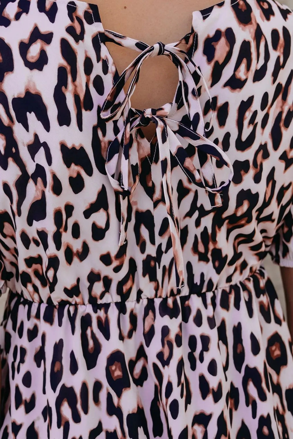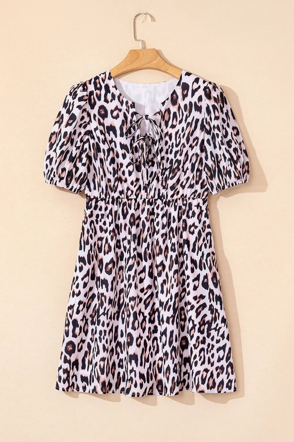 Leopard Tied Front Keyhole Puff Short Sleeve Mini Dress