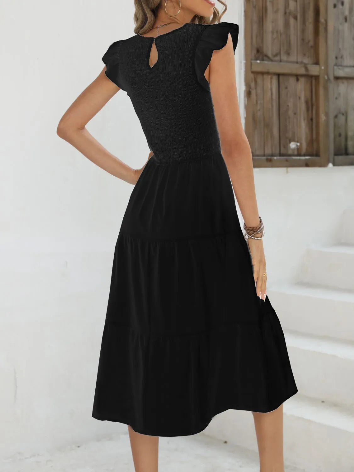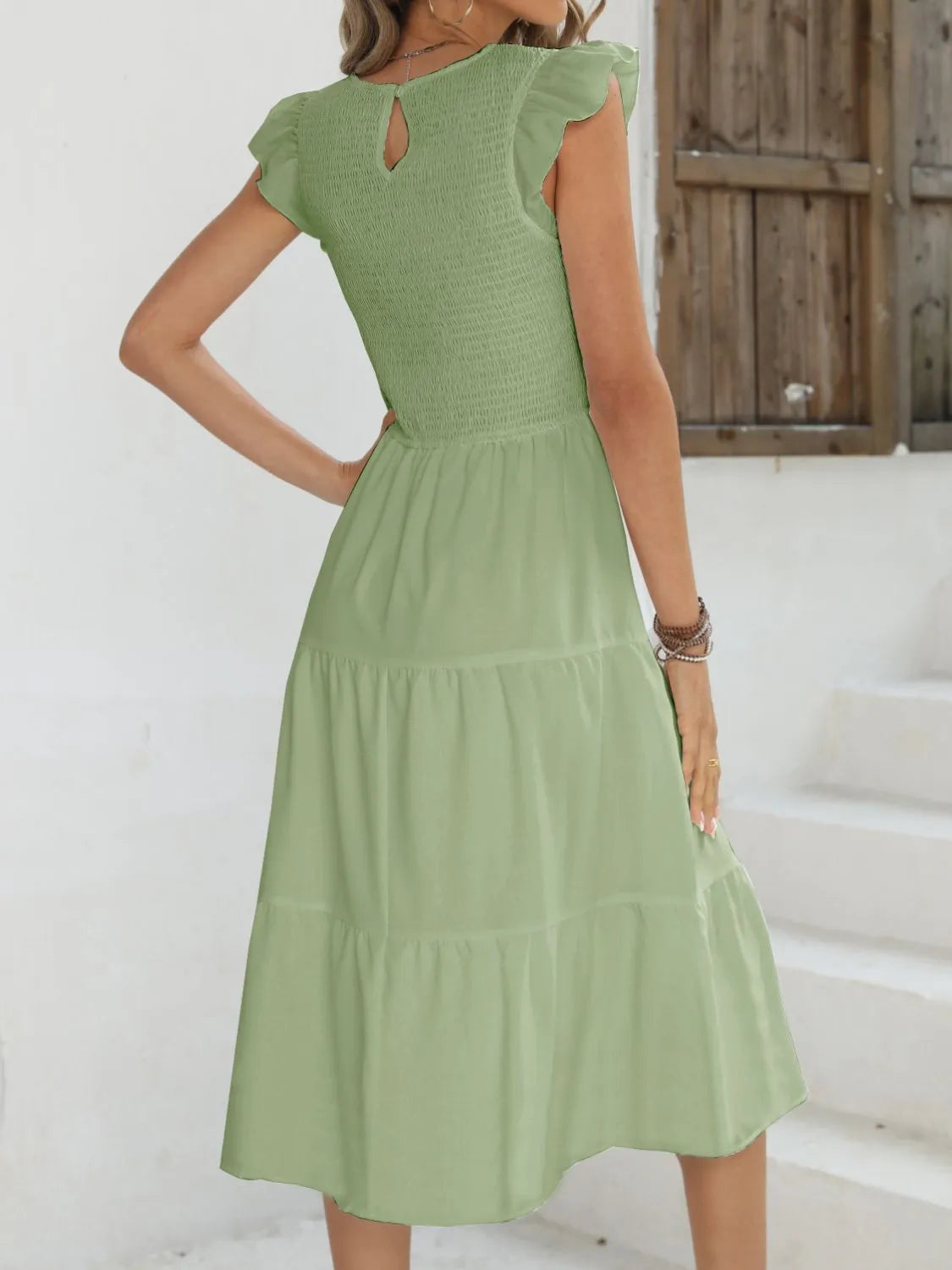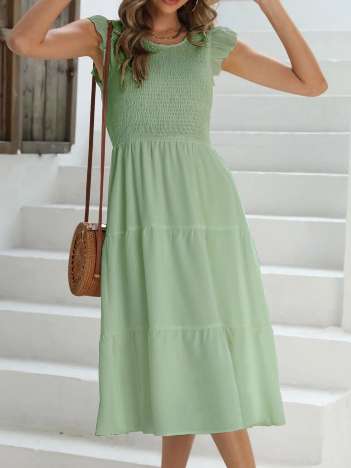Ruffled Round Neck Cap Sleeve Dress