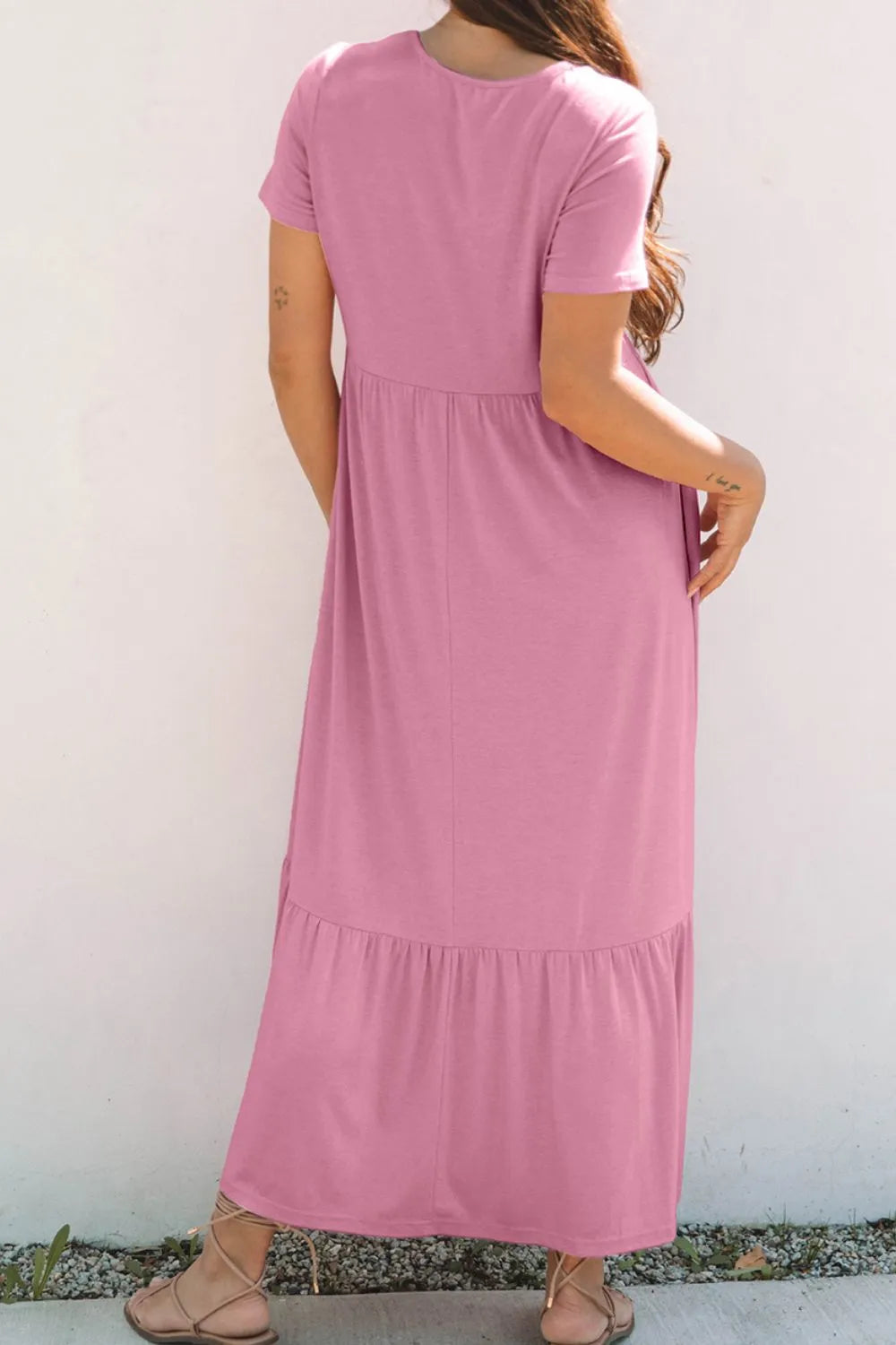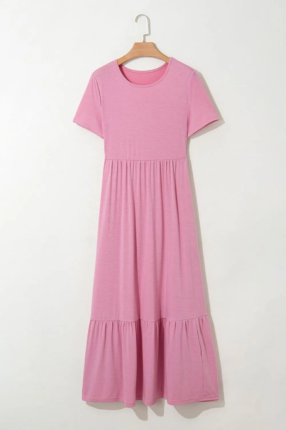 Home/All/Solid Color High Waist Pocketed Tee Dress