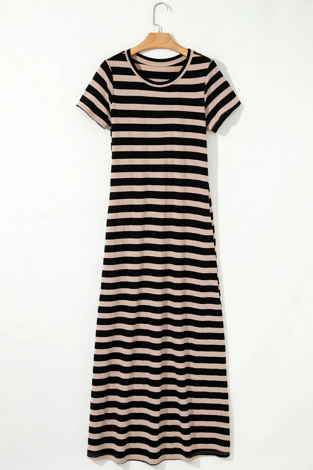Stripe Casual Round Neck Tee Dress with Pockets
