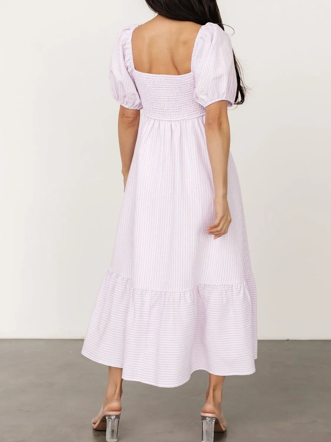 Striped Sweetheart Neck Puff Sleeve Midi Dress