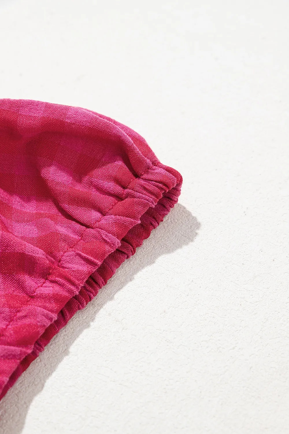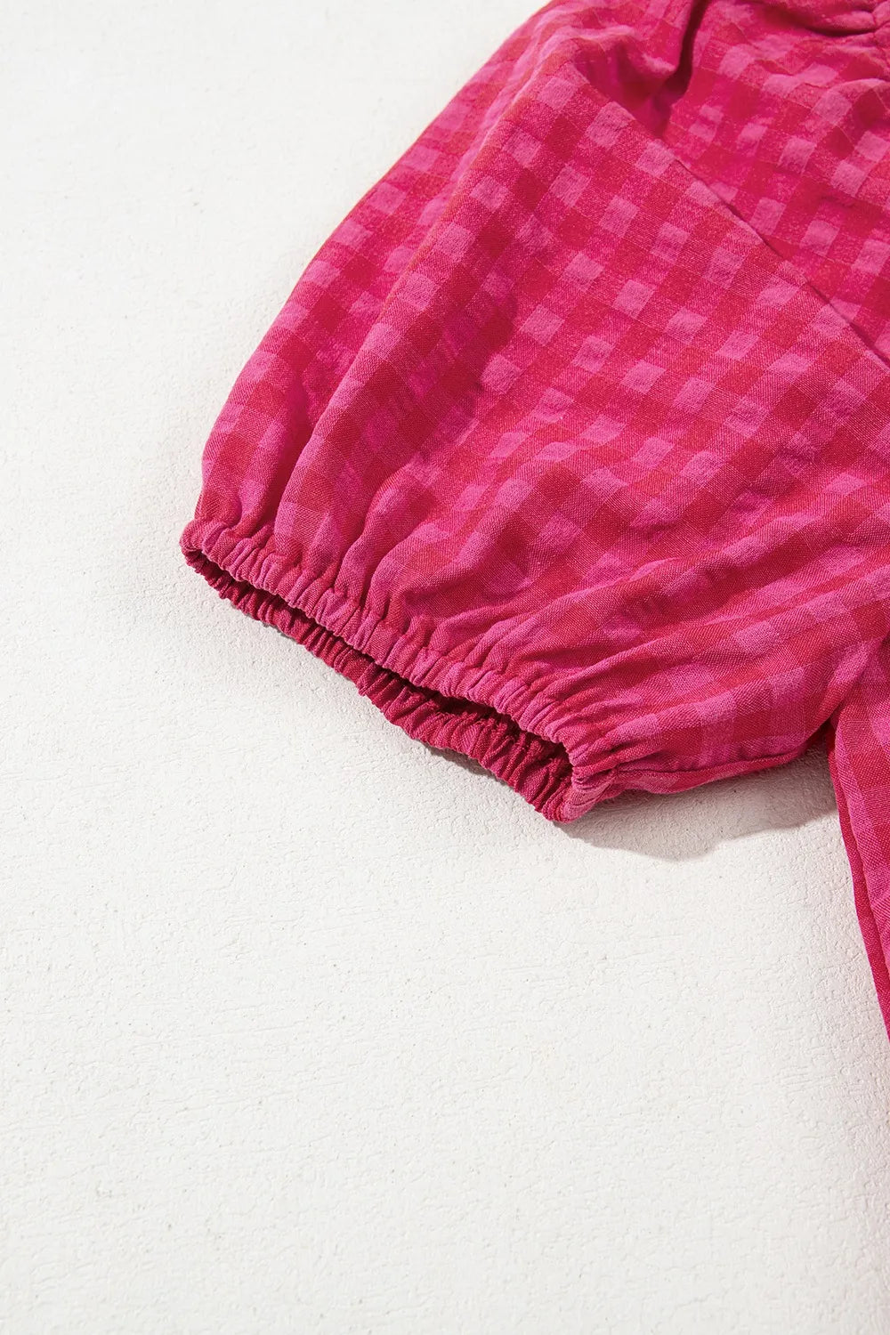 SYNZ Gingham Check Bubble Sleeve Ruffled Maxi Dress
