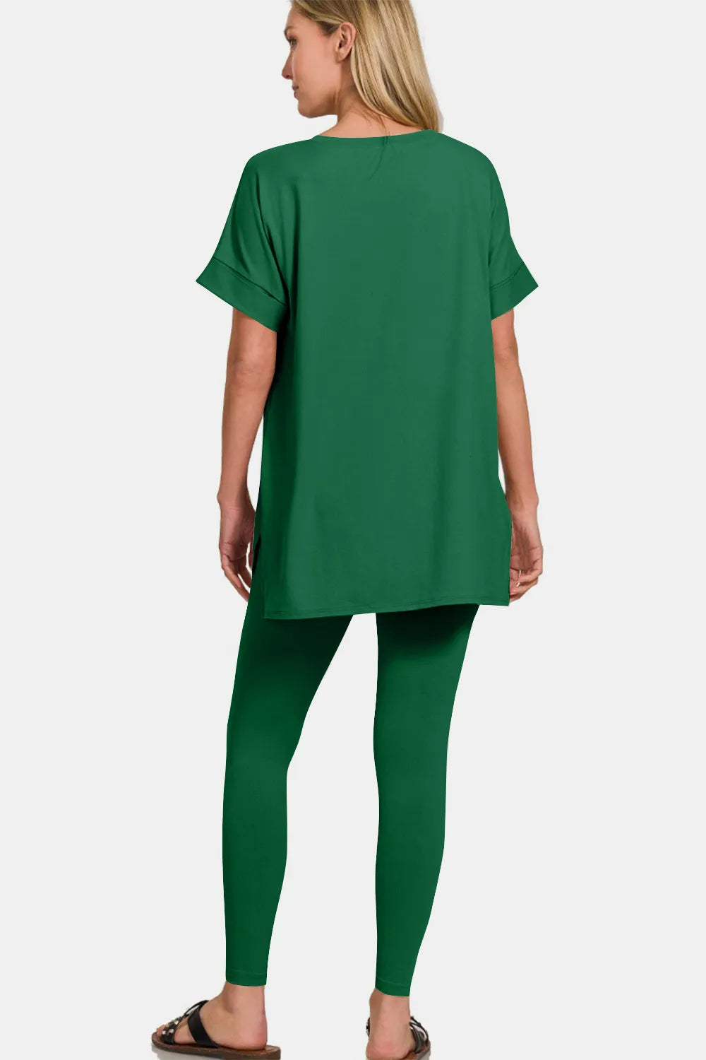 The rolled short sleeve t-shirt and leggings lounge set is the perfect combination of comfort and style for relaxed days at home or running errands. The t-shirt features rolled sleeves for a casual and laid-back look, while the leggings offer a snug and cozy fit. This set is designed for ultimate comfort, with soft and stretchy fabric that allows for ease of movement. Whether lounging around the house or heading out for a quick errand, this set provides a stylish and effortless outfit option. Pair with sneakers or slippers for a cozy at-home look, or dress it up with some accessories for a more put-together ensemble. Stay comfortable and chic in the rolled short sleeve t-shirt and leggings lounge set for a versatile and easy-to-wear outfit anytime.