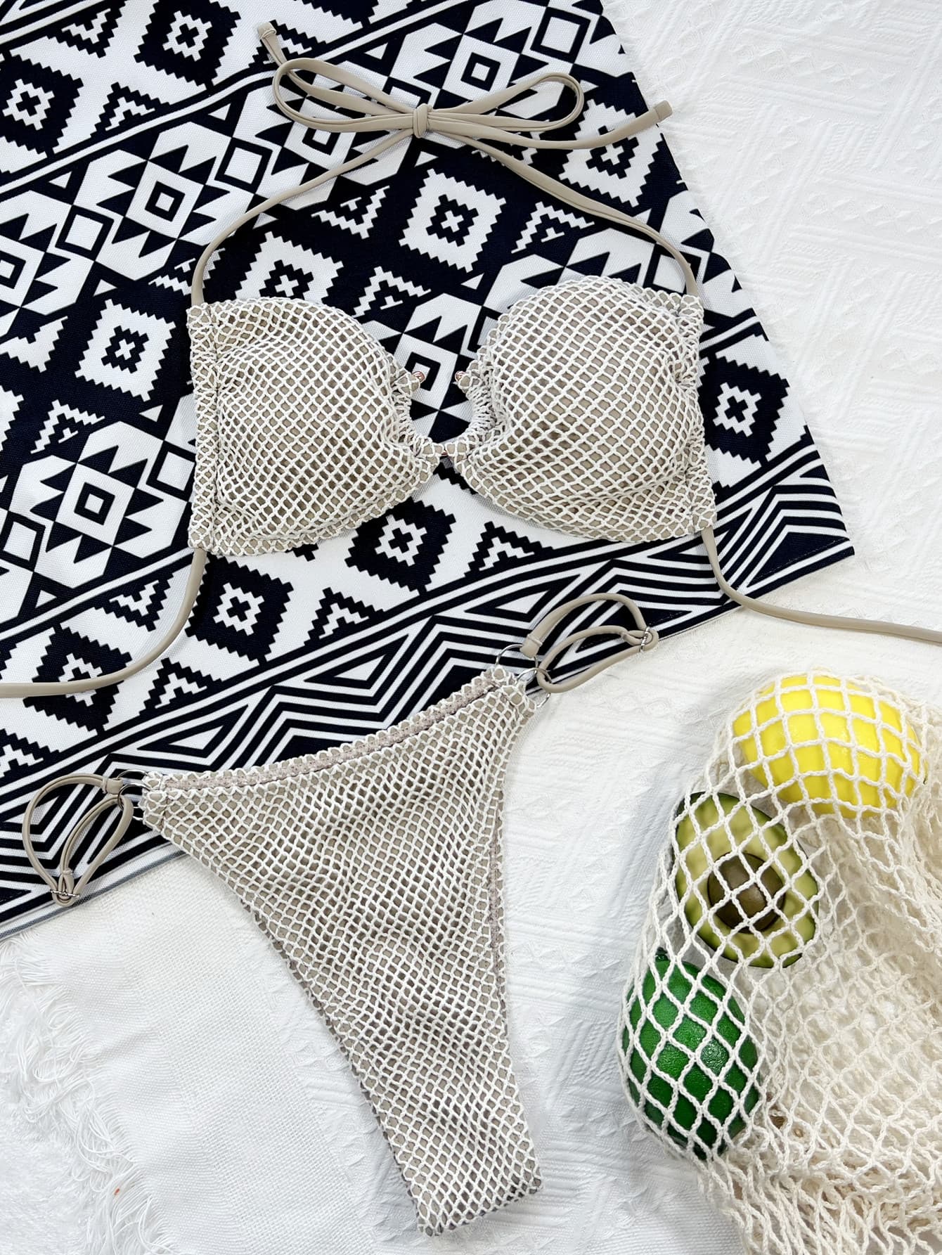 Home/Bikinis & Tankinis/Halter Neck Fishnet Bikini Set