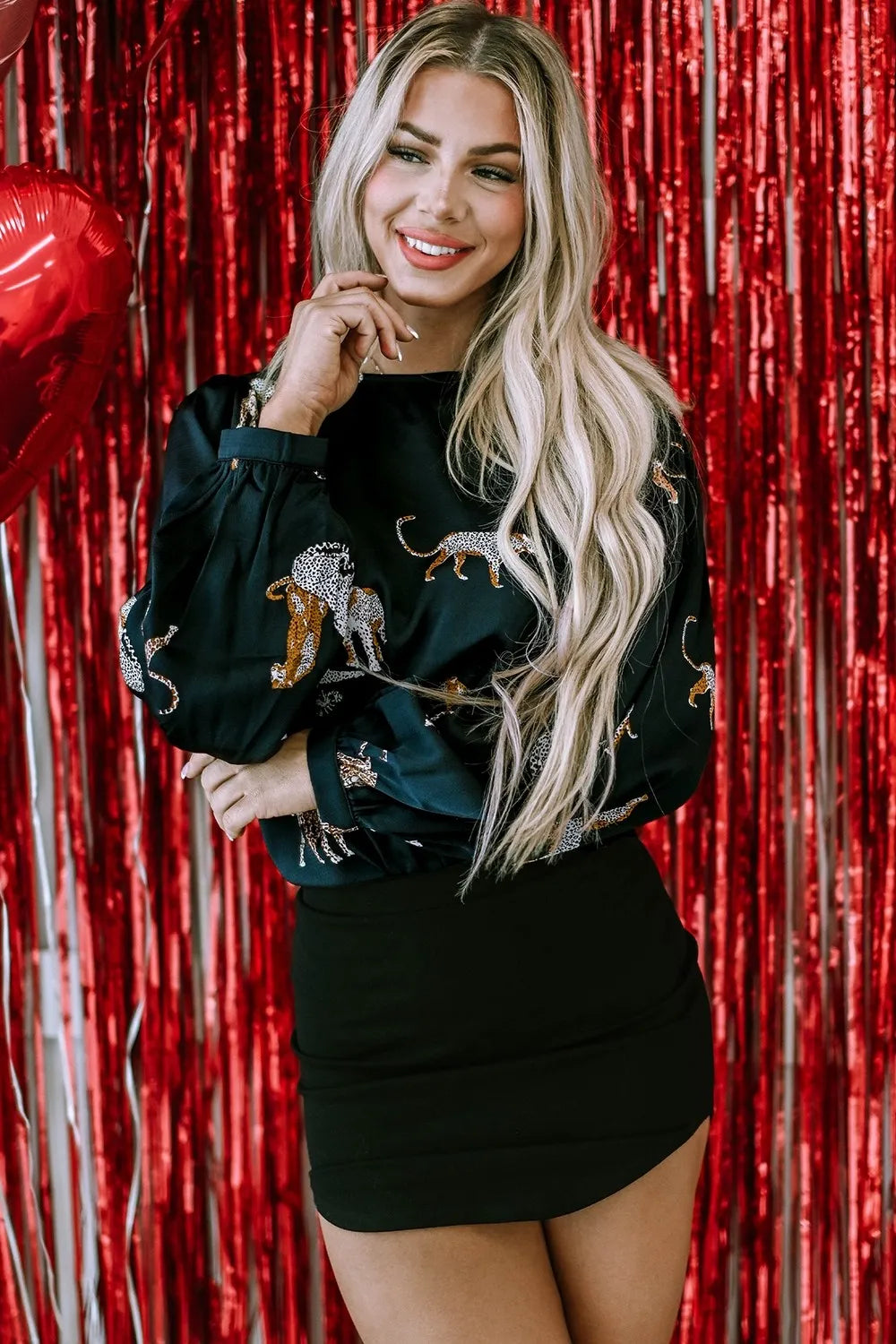 Home/Blouses/Animal Pattern Round Neck Long Sleeve Blouse