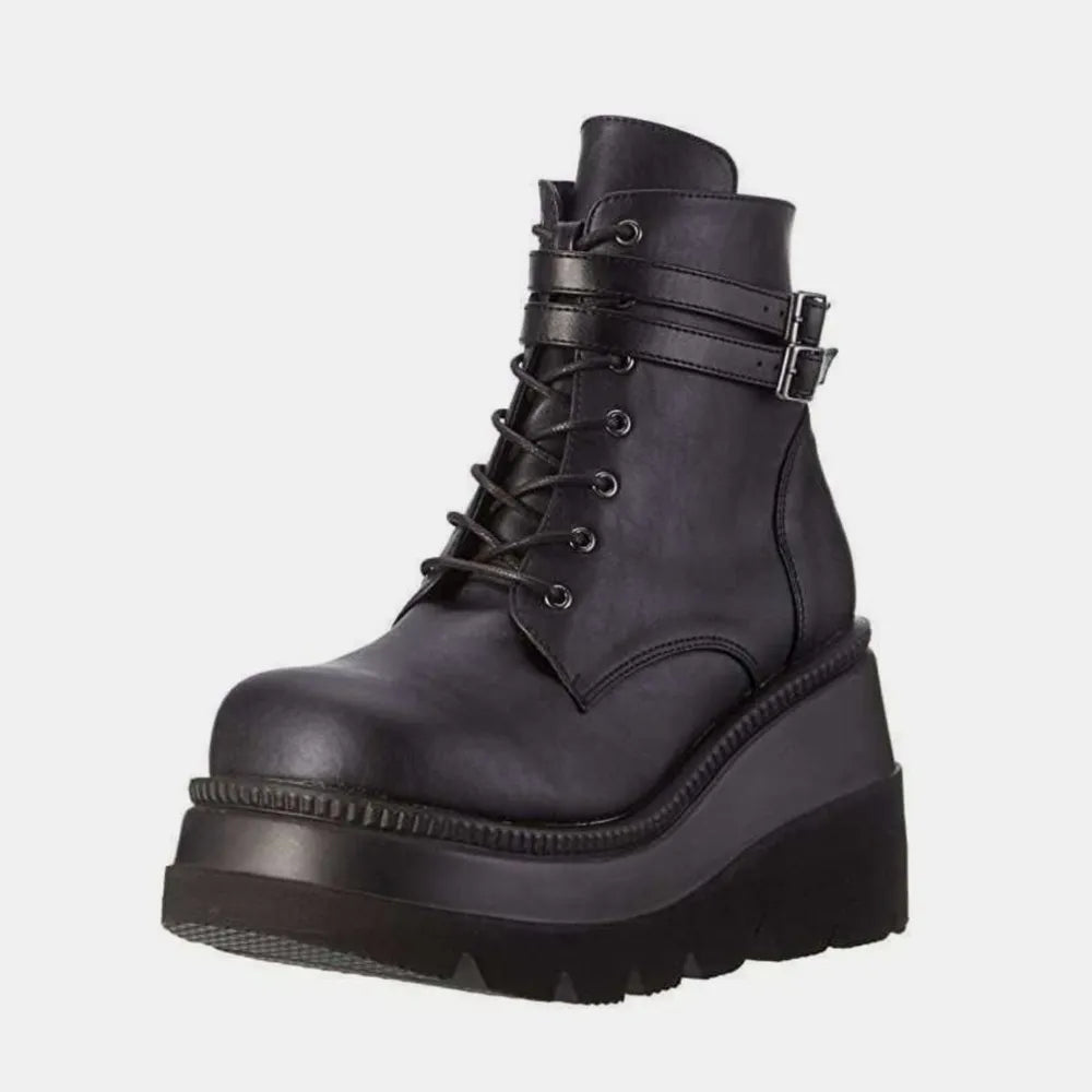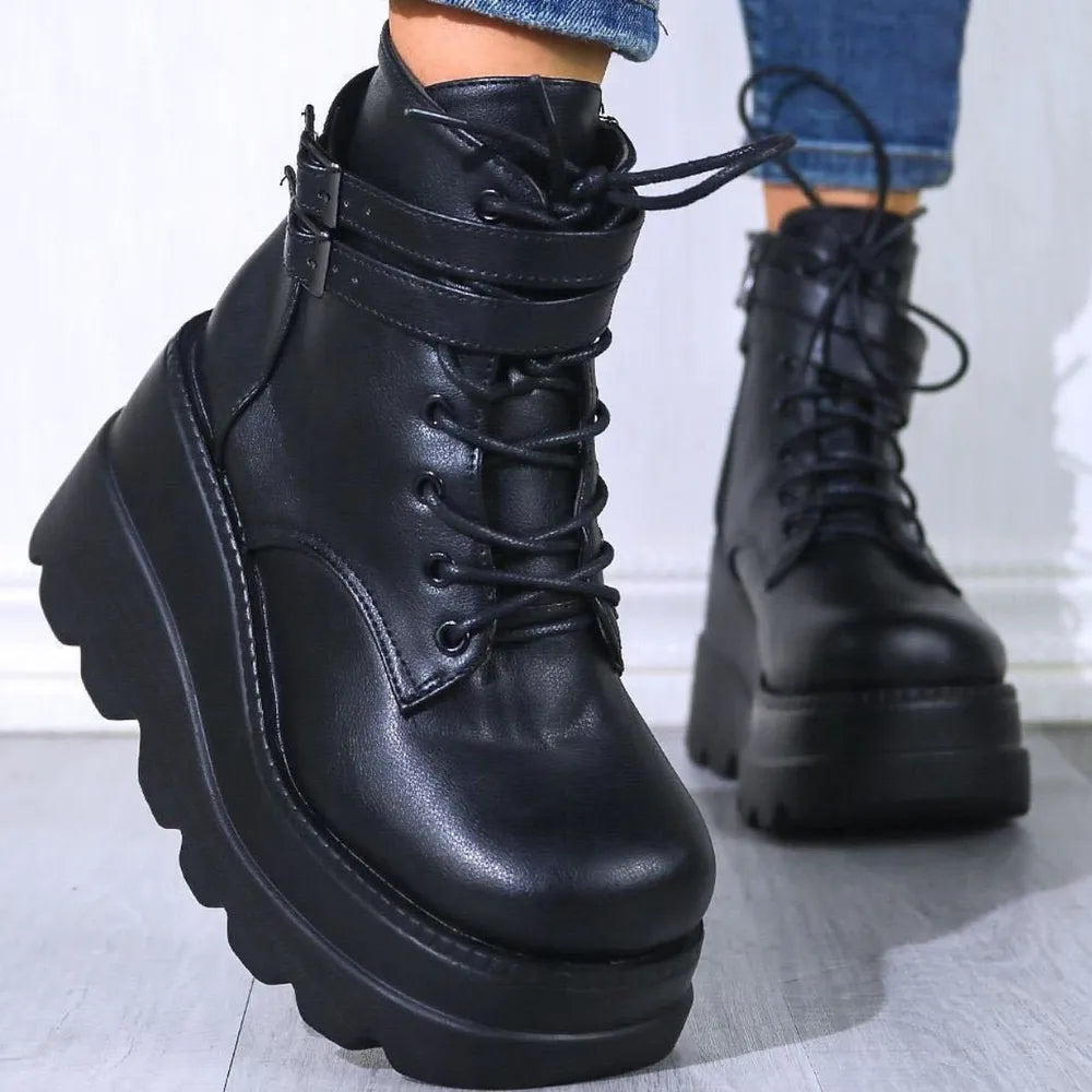 PU Leather Lace-Up Wedge Boots