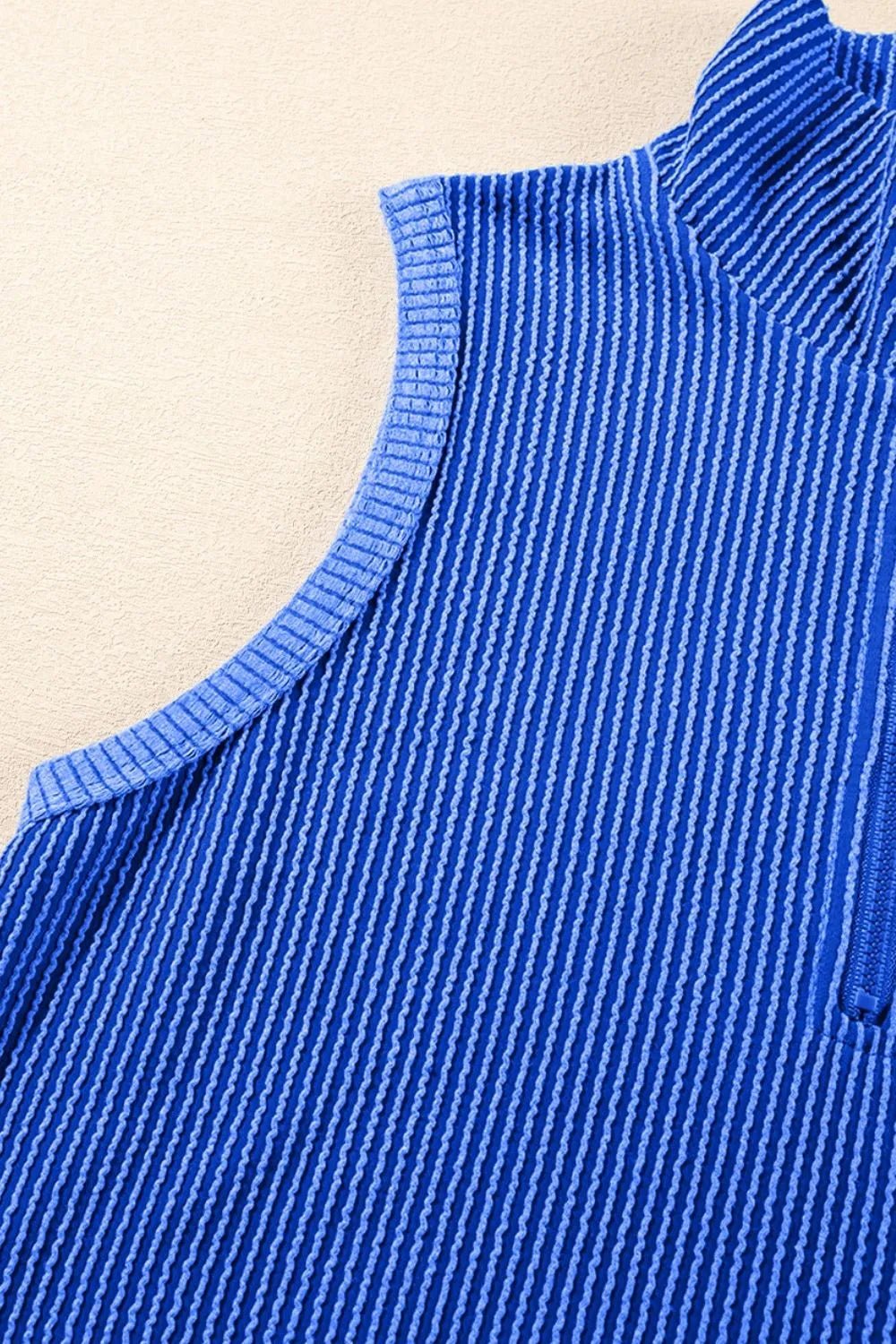 Home/Bottoms/Corded Collared Half Zip Tank and Shorts Set