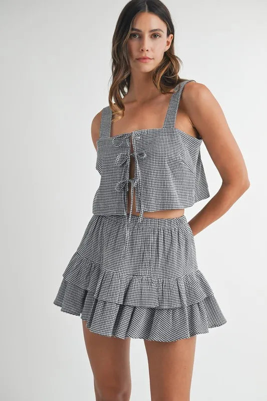 Home/Bottoms/MABLE Gingham Plaid Crop Top and Mini Skirt Set
