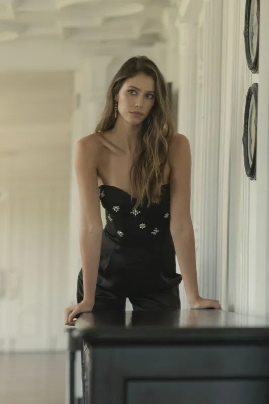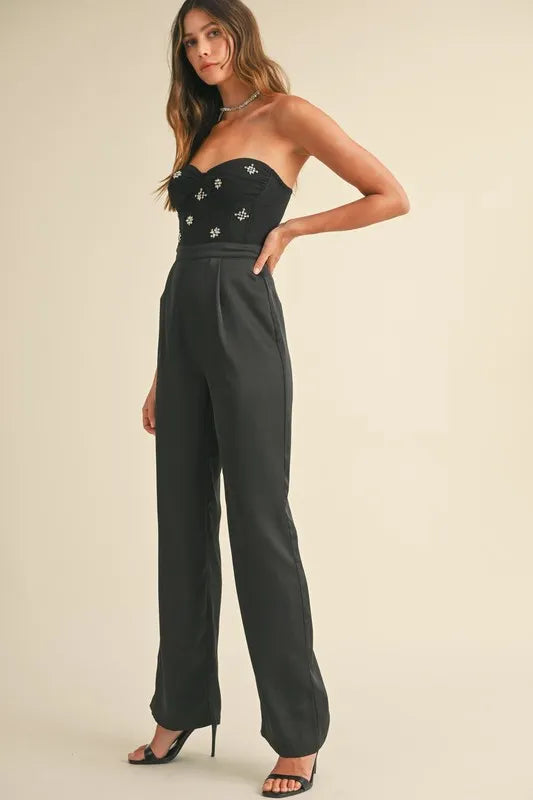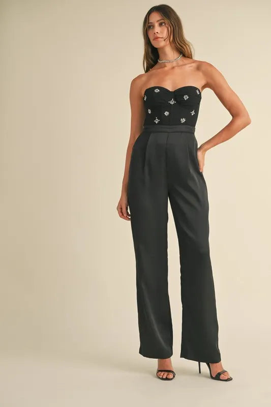 MABLE Rhinestone Applique Bustier Jumpsuit