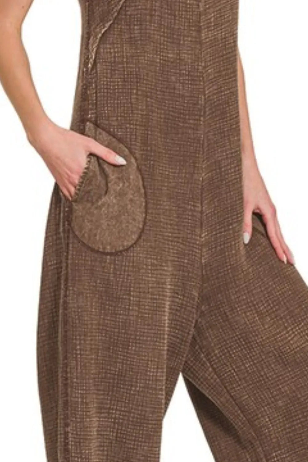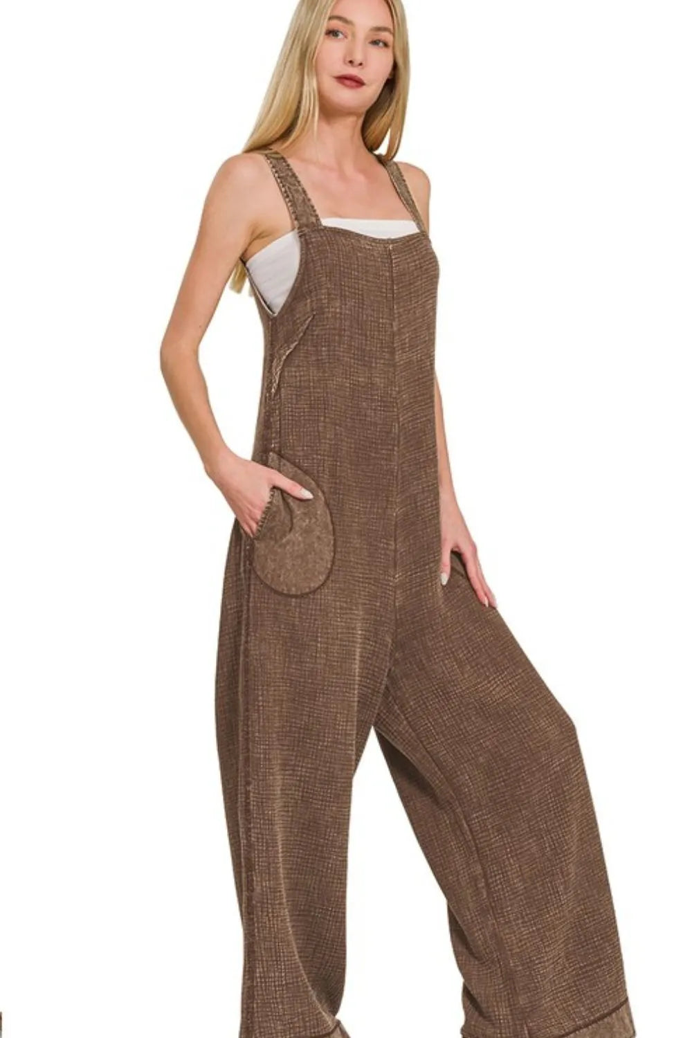 Home/Bottoms/Zenana Double Gauze Washed Wide Leg Overalls