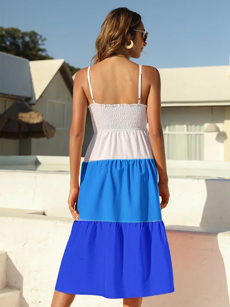 Home/Cami Dress/Color Block Tie-Front Midi Dress