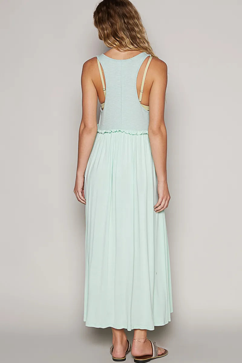 This elegant POL Frill Slit Square Neck Cami Dress features a sophisticated square neckline and adjustable cami straps for the perfect fit. Made from lightweight, breathable fabric in a refreshing mint green shade, this maxi dress offers both comfort and style. The strategic side slit adds a touch of allure while maintaining elegance. Perfect for summer occasions, date nights, or casual outings. The flowing silhouette flatters all body types while the quality construction ensures durability and lasting wear.