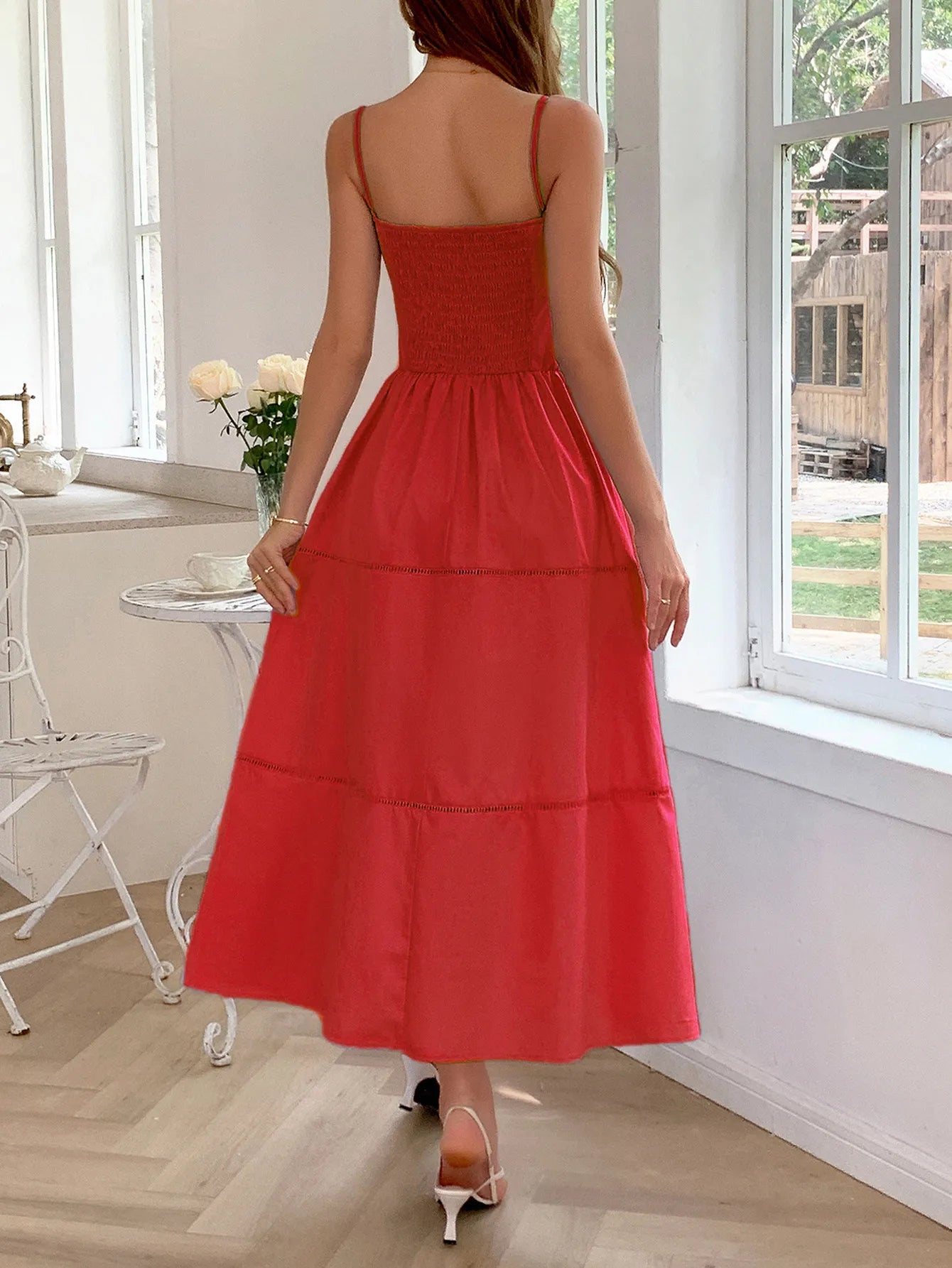 • Features:Ruched,Tied,Frill,Smocked
