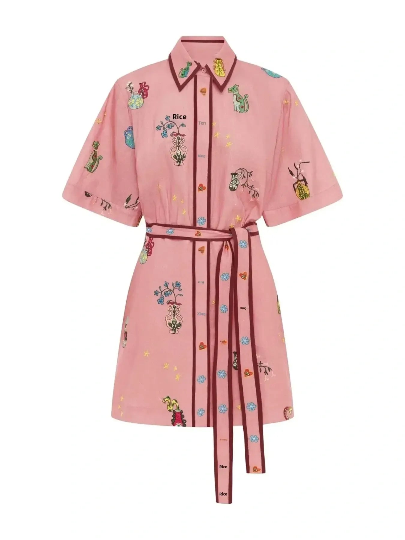 • Features:Tied,Buttoned,Embroidered,Belted