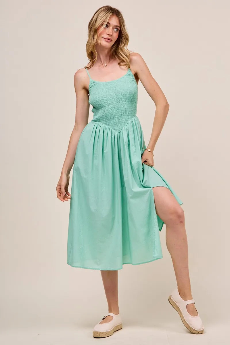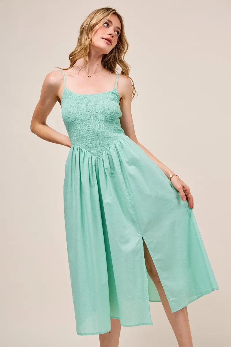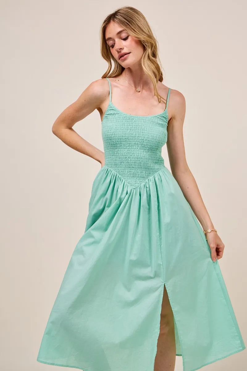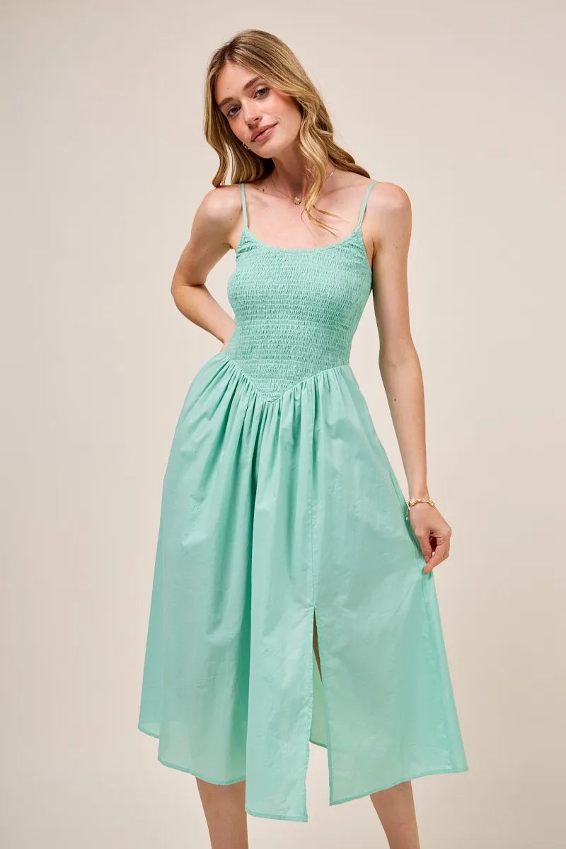 SO ME Smocked Sleeveless Casual Everyday Dress With Slit