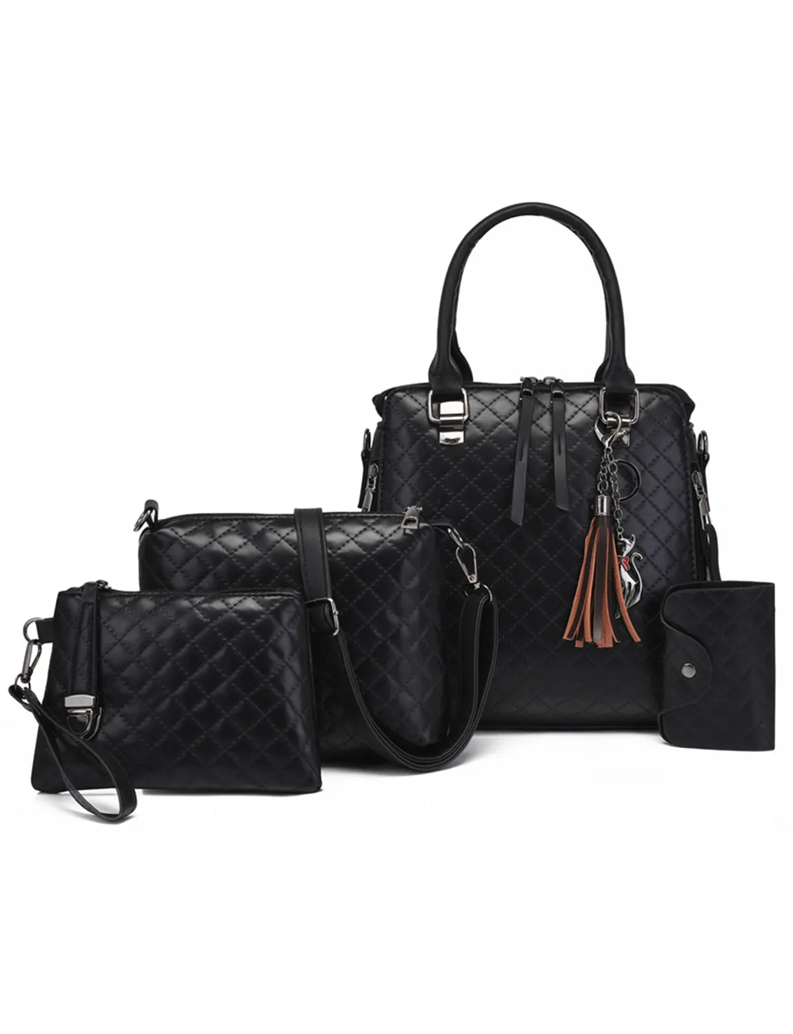 Home/Clutch / Pouch/4-Piece PU Leather Bag Set with Tassel Detail