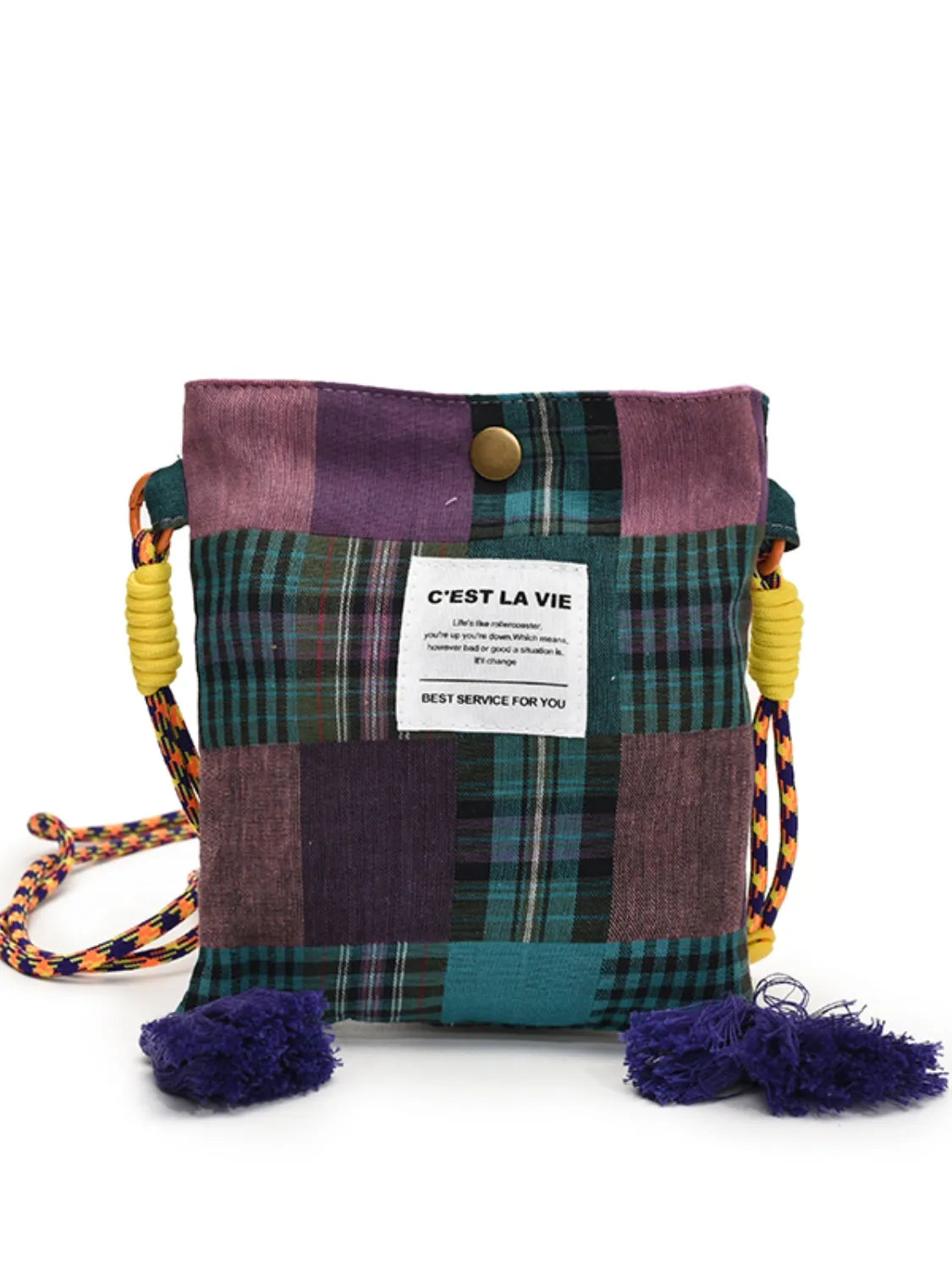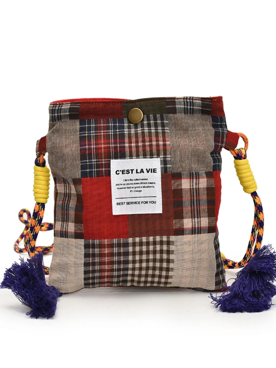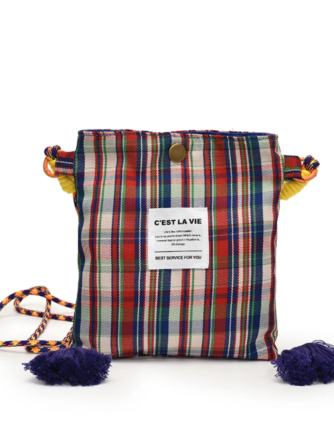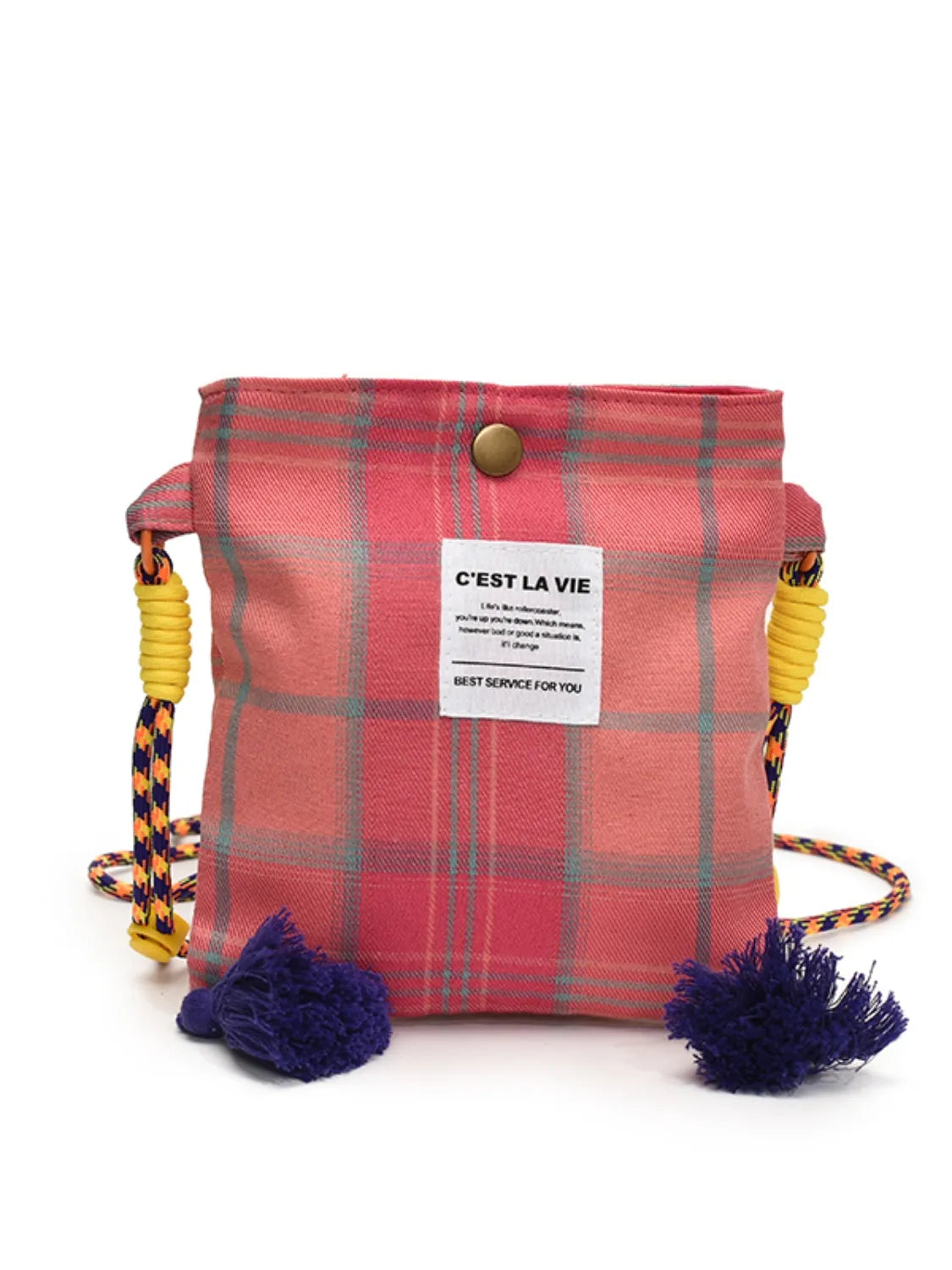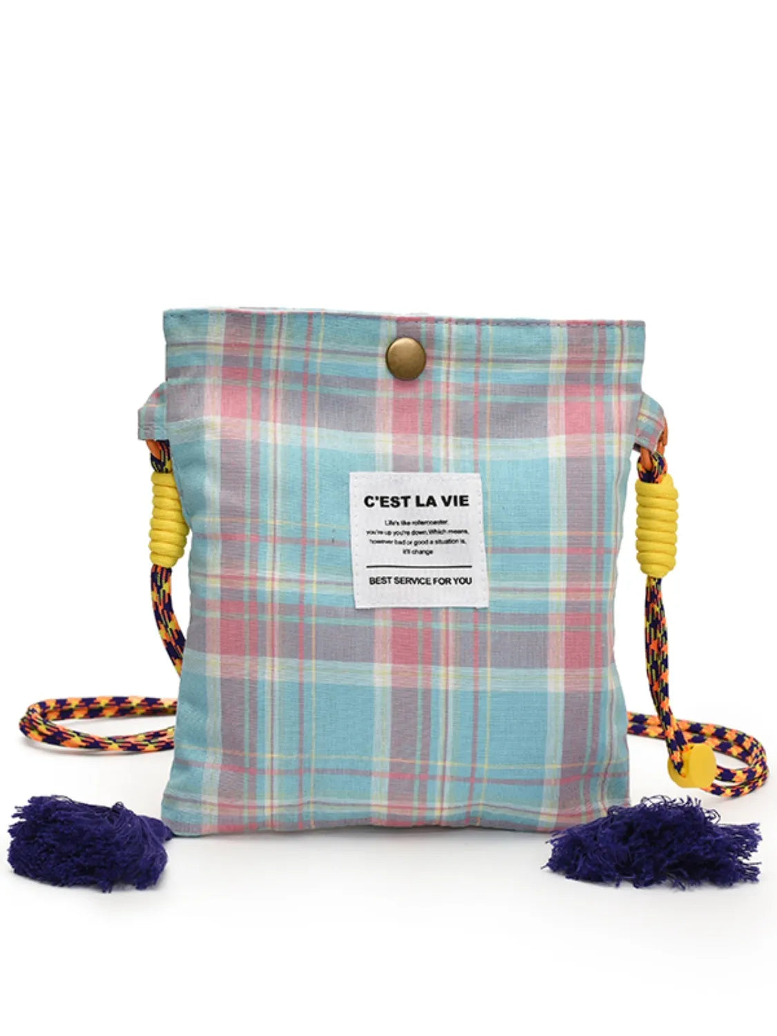 C'EST LA VIE Plaid Crossbody Bag with Tassel Detail