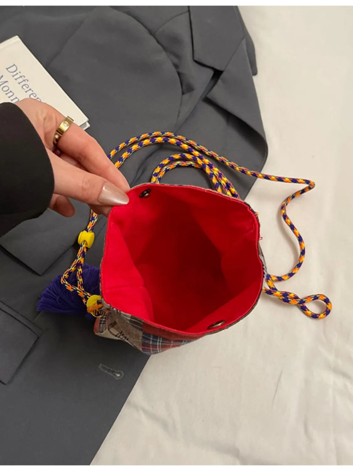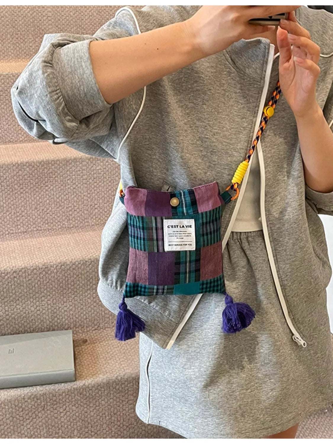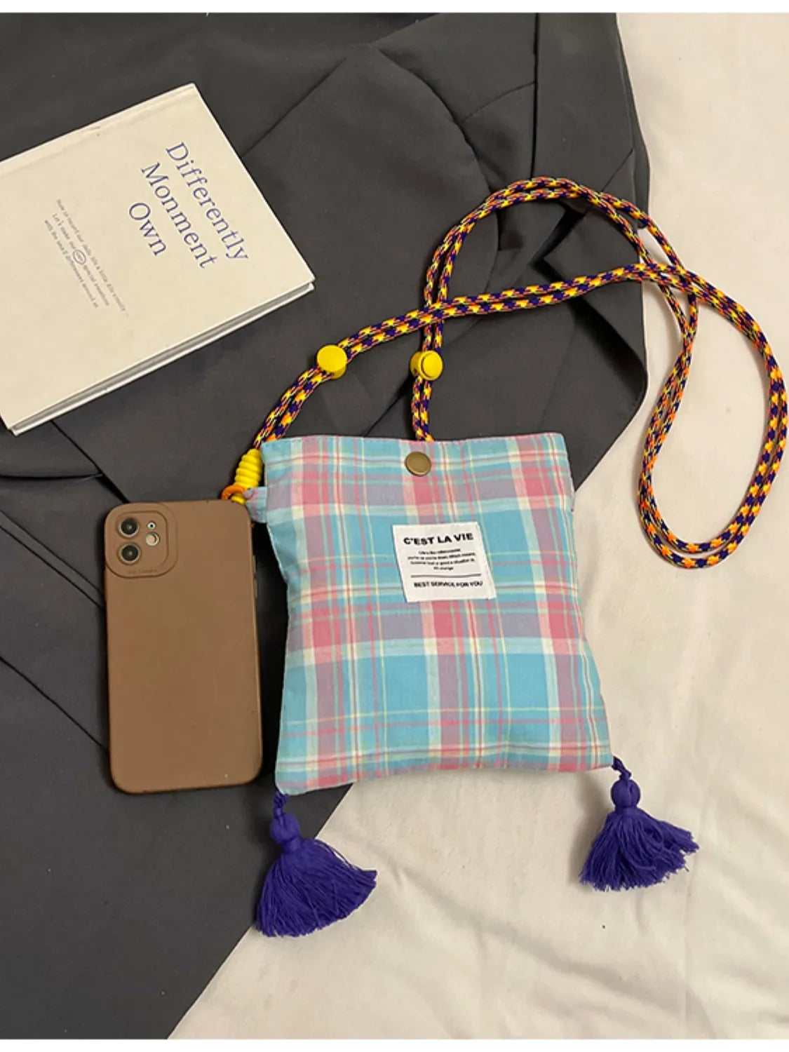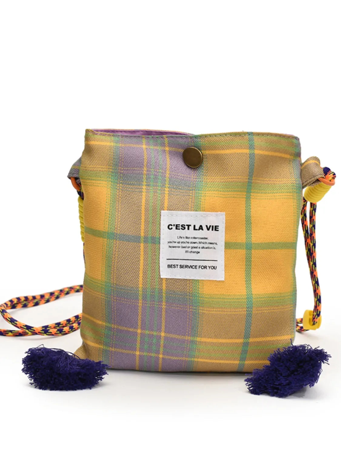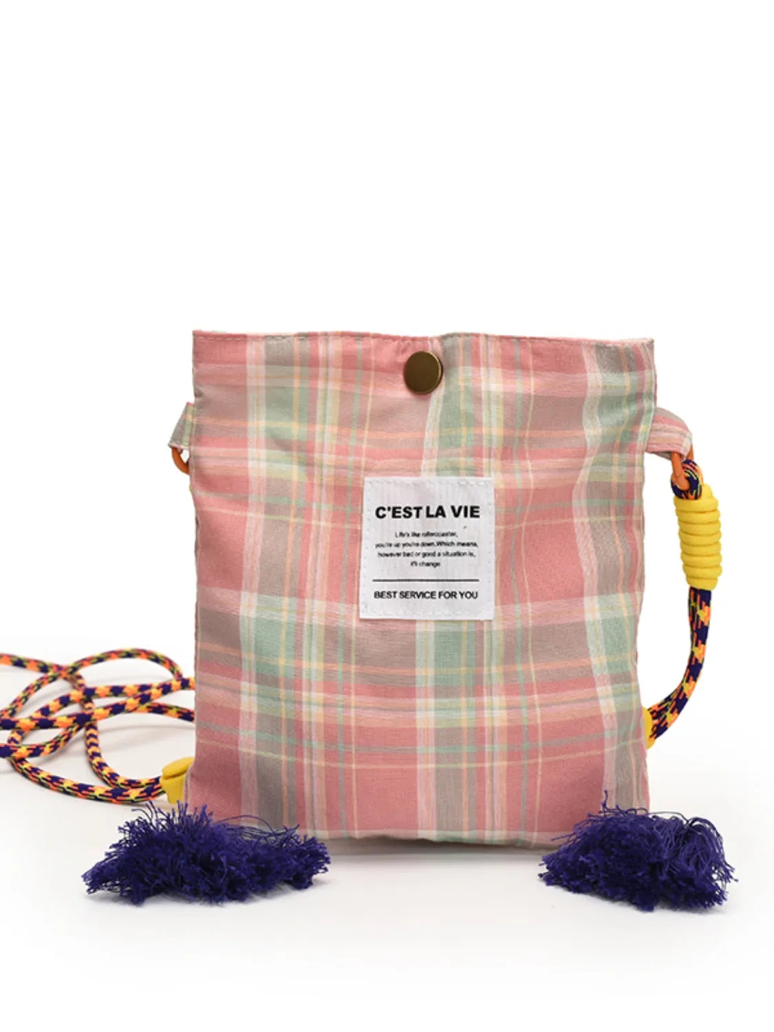 C'EST LA VIE Plaid Crossbody Bag with Tassel Detail