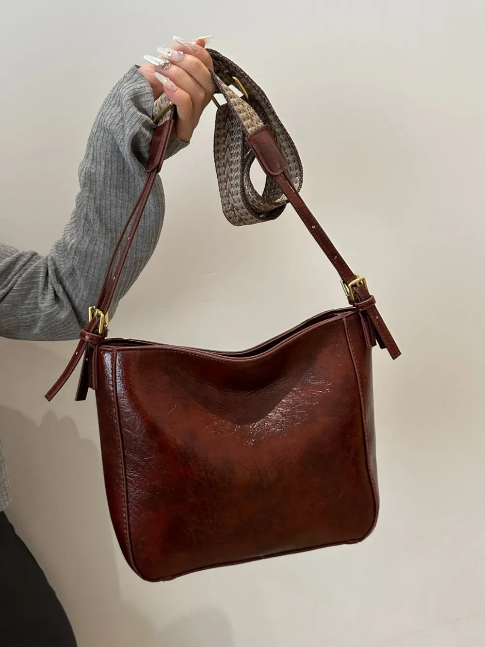 PU Leather Adjustable Strap Crossbody Bag with Pouch