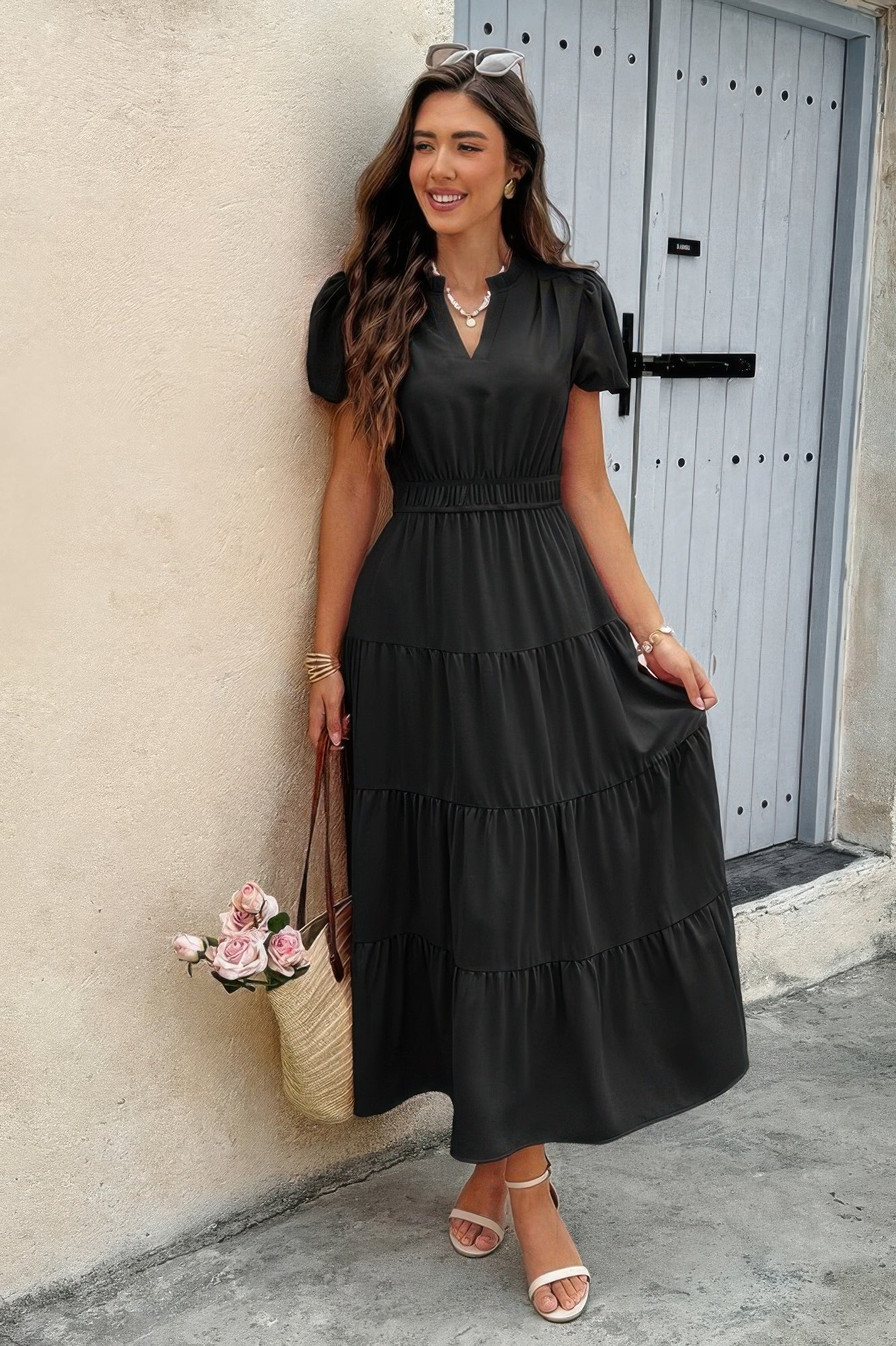 The Solid V Neck Color Block Elastic Waist Dress combines chic styling with a relaxed fit for effortless wear. Crafted from 100% Polyester, it offers both comfort and durability. Design details include solid v neck color block elastic waist dress, making it a versatile choice for your wardrobe. Perfect for casual/daily/outdoor/vacation/school/going out.. Pair it with your favorite bottoms for a laid-back look or dress it up with accessories for a more refined vibe. This piece seamlessly transitions from casual to dressy occasions.