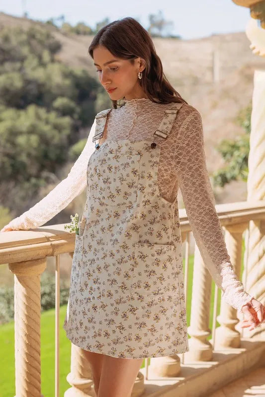 Annie Wear Stretch Ditsy Print Denim Overall Mini Dress