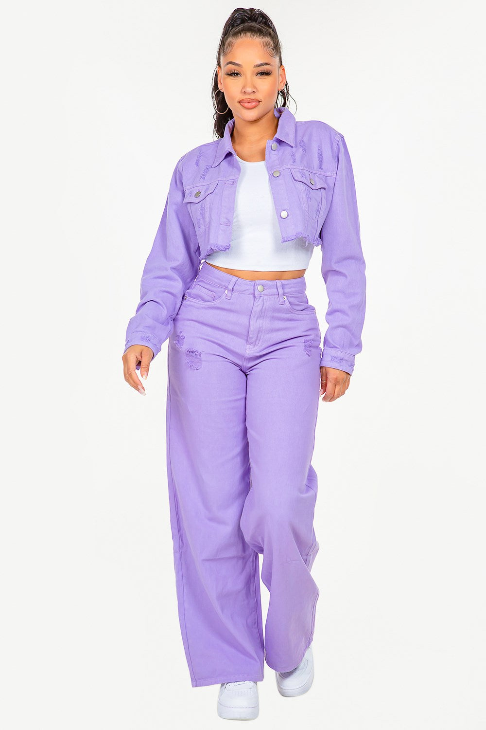 High Waist Distressed Wide Leg Jeans are a fashion-forward choice for those looking to add a trendy edge to their wardrobe. The high waist design sits above the natural waistline, providing a flattering and slimming effect on the midsection. The wide leg silhouette offers a relaxed and comfortable fit, perfect for creating a stylish and effortlessly chic look. The distressed detailing adds a touch of edginess and a lived-in feel to the jeans, enhancing their casual and cool vibe. These jeans are versatile and can be paired with various tops and footwear for a range of stylish outfits.