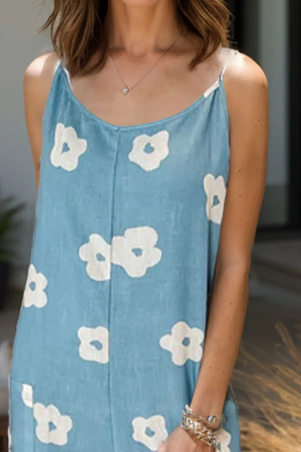 Flower Spaghetti Strap Wide Leg Jumpsuit