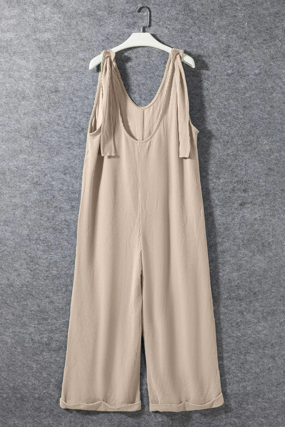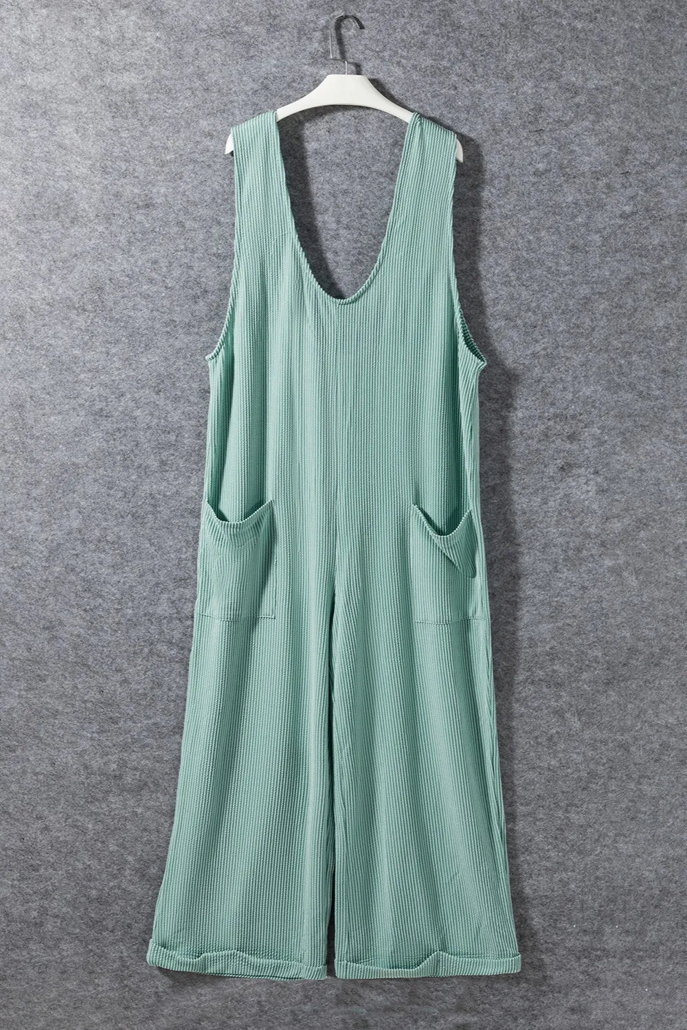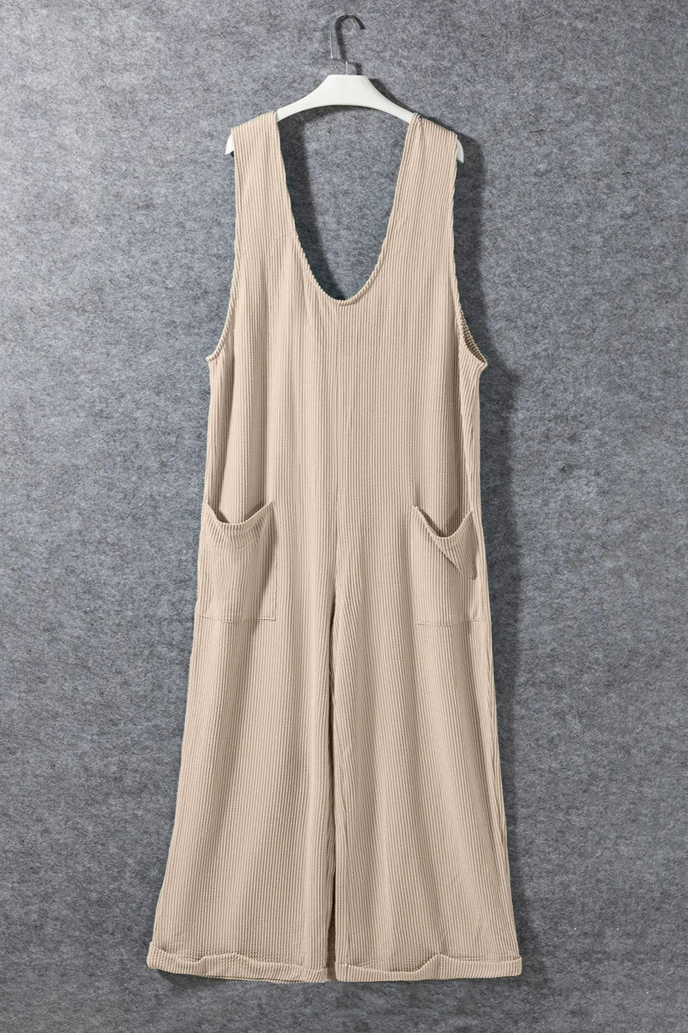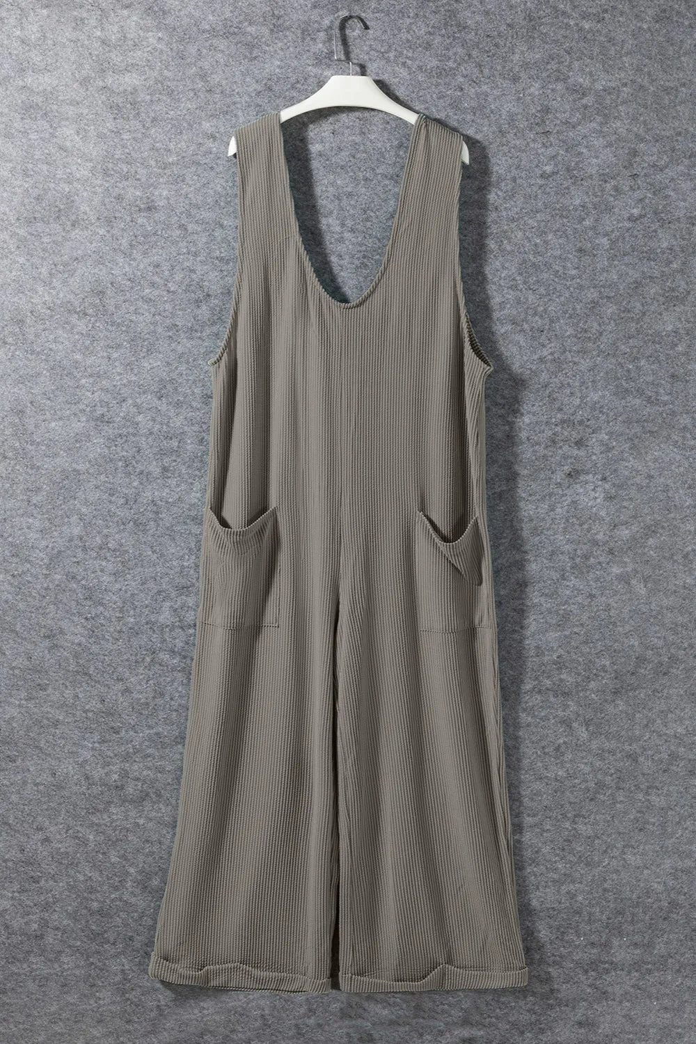 Ribbed V-Neck Wide Leg Jumpsuit with Pockets
