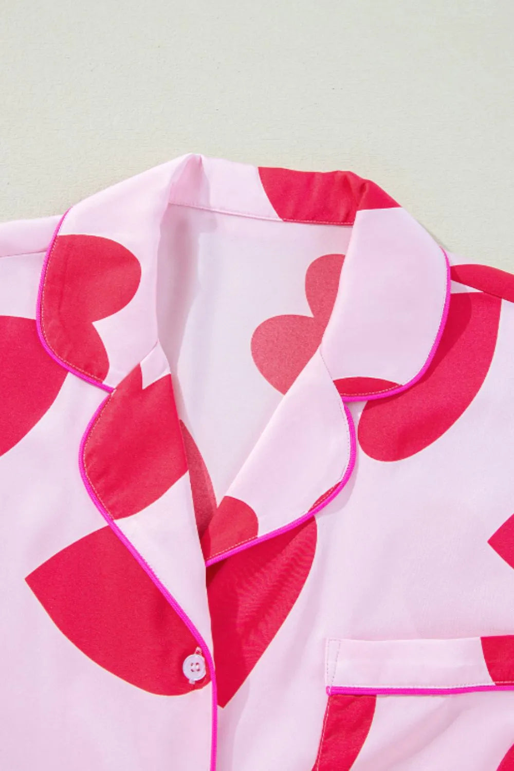 Home/Lounge & Intimates/Heart Collared Neck Short Sleeve Top and Pants Lounge Set