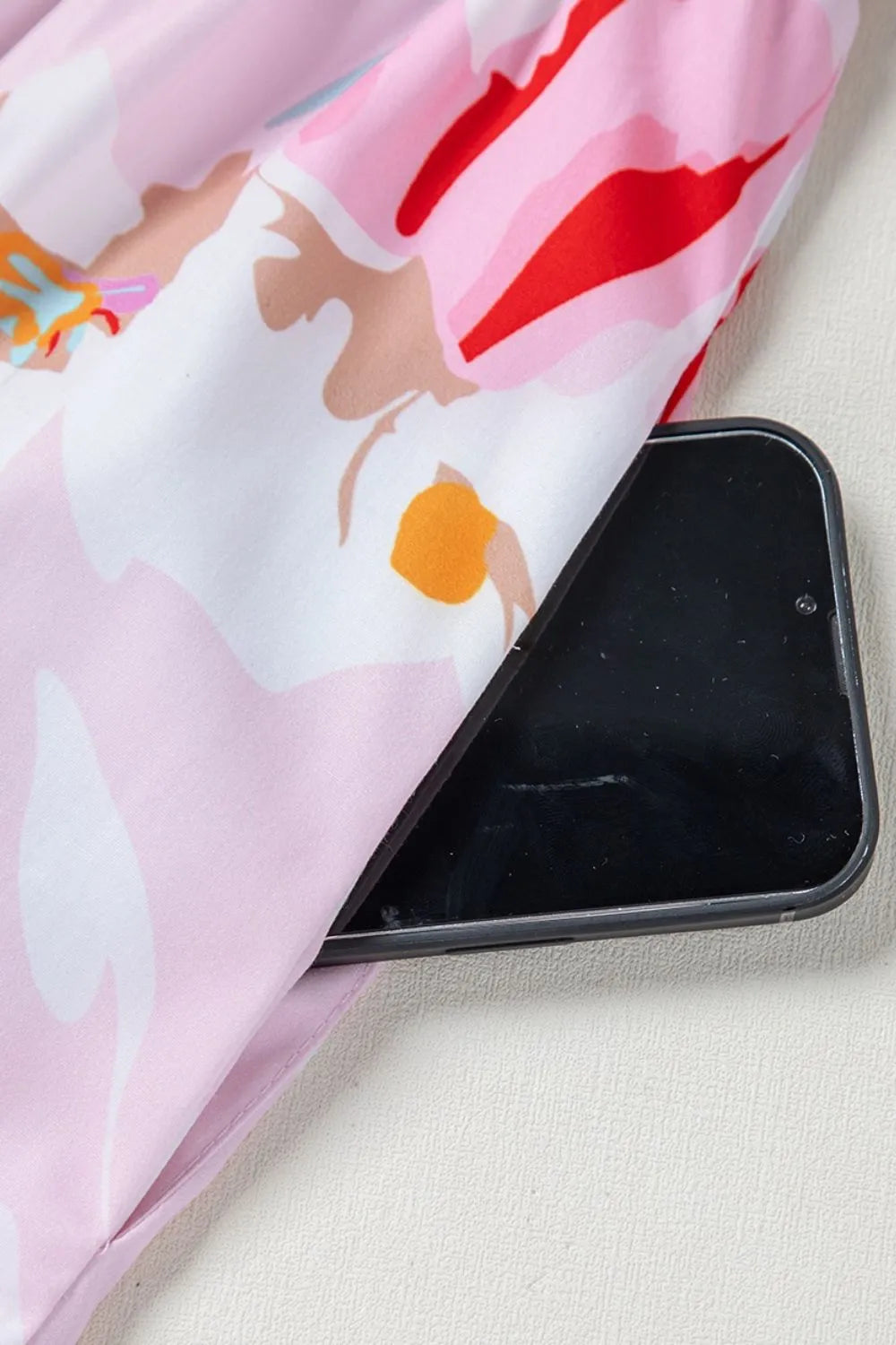Home/Maxi Dresses/Floral Print Knotted Shoulder Smocked Maxi Dress