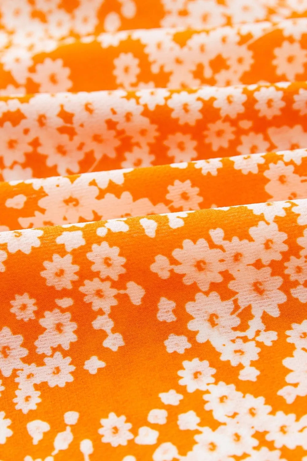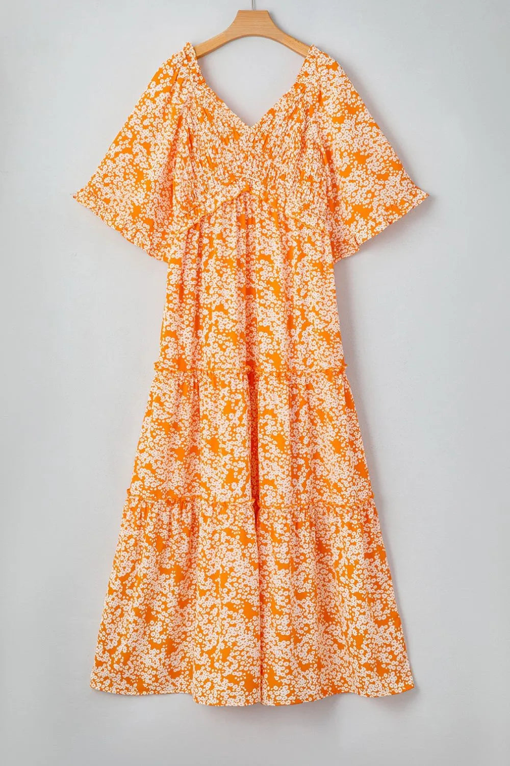 Floral Print Smocked V Neck Wide Sleeve Maxi Dress