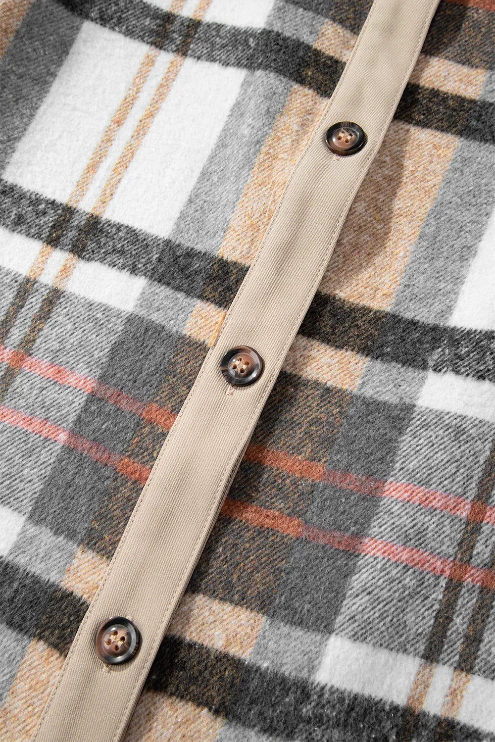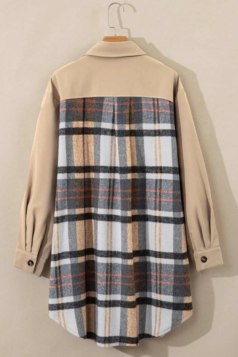 Home/Maxi Dresses/Pocketed Plaid Long Sleeve Mini Shirt Dress
