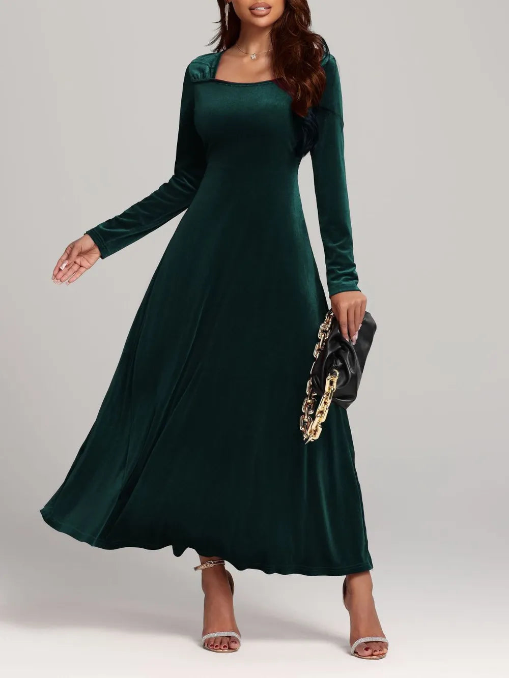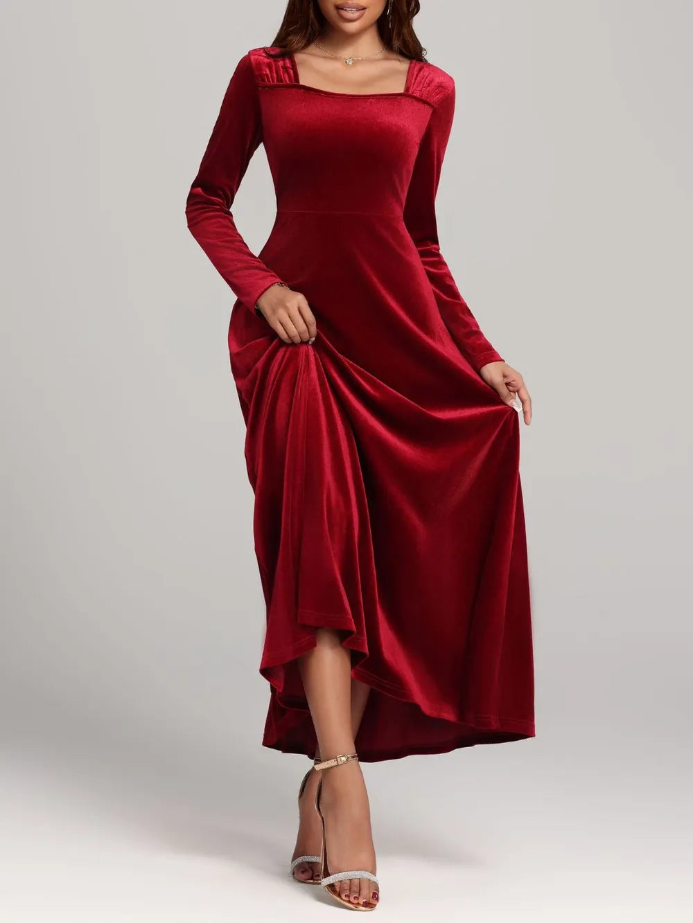 Home/Maxi Dresses/Square Neck Long Sleeve Velvet Dress