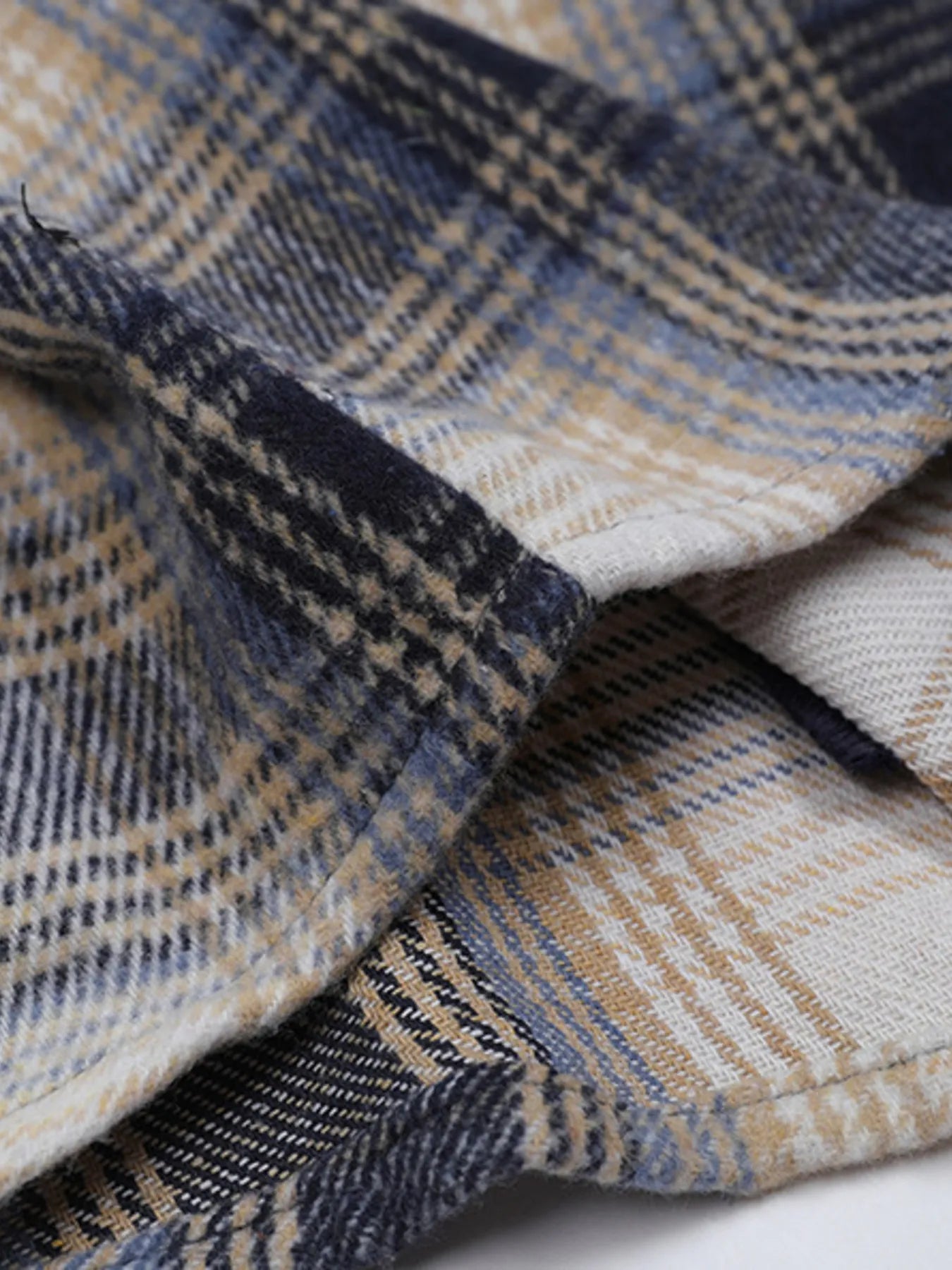 Home/Men Jackets/Men's Plaid Button Up Long Sleeve Jacket