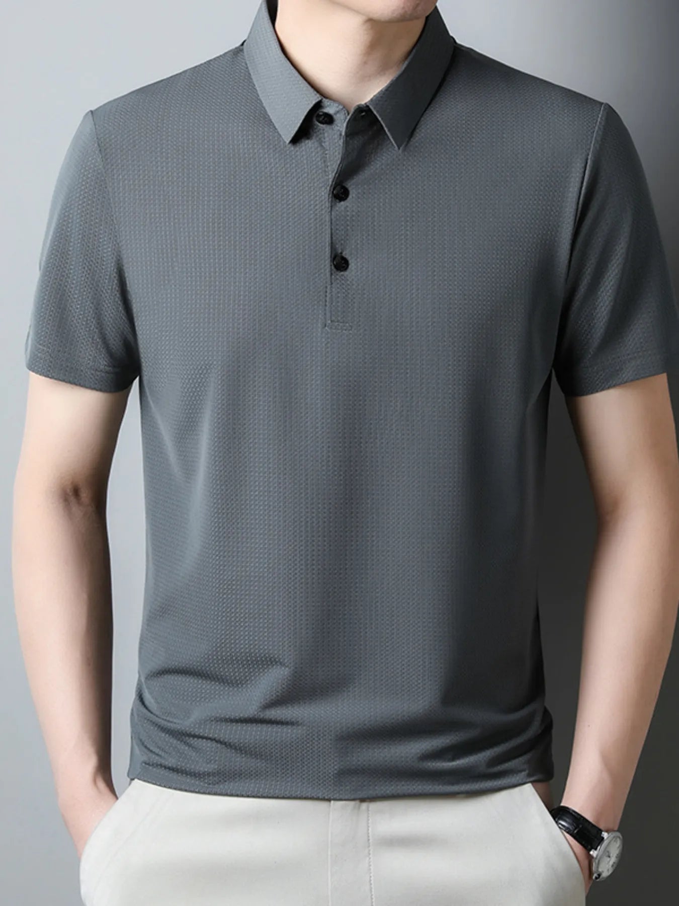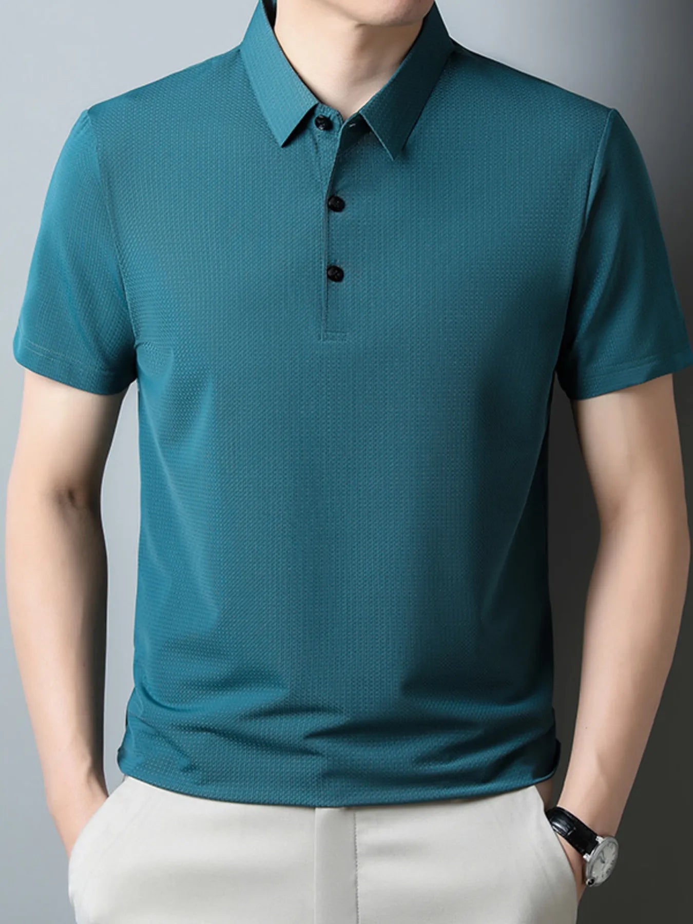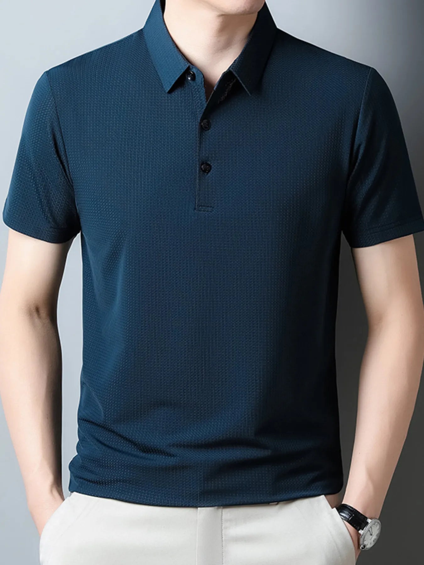 Home/Men Polo Shirts/Men's Plus Size Classic Textured Slim Fit Polo Shirt