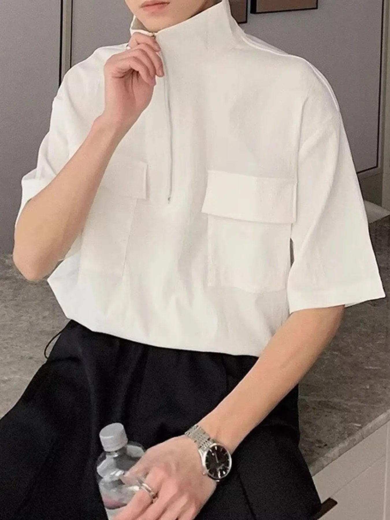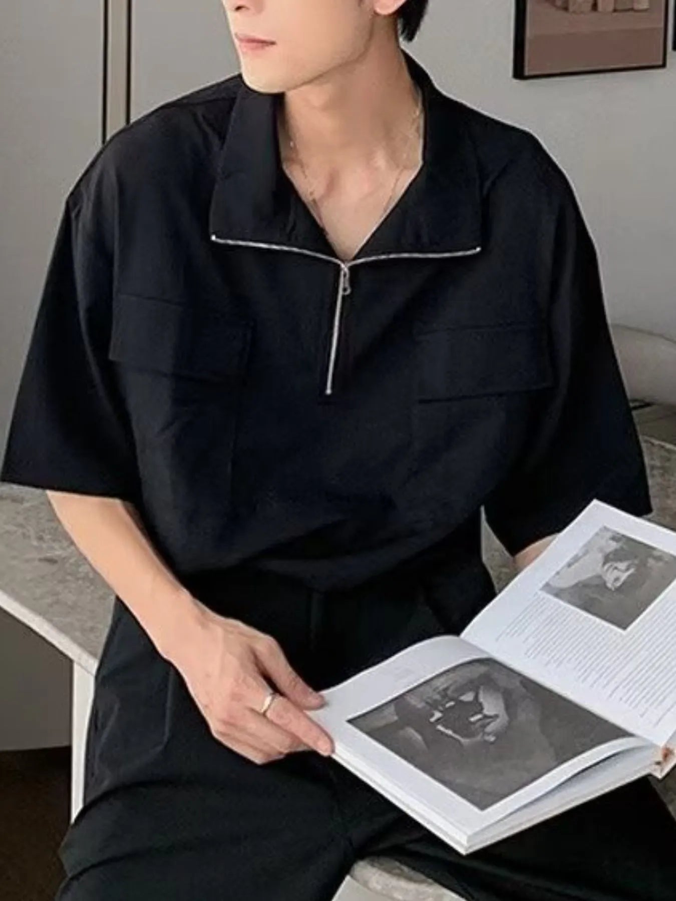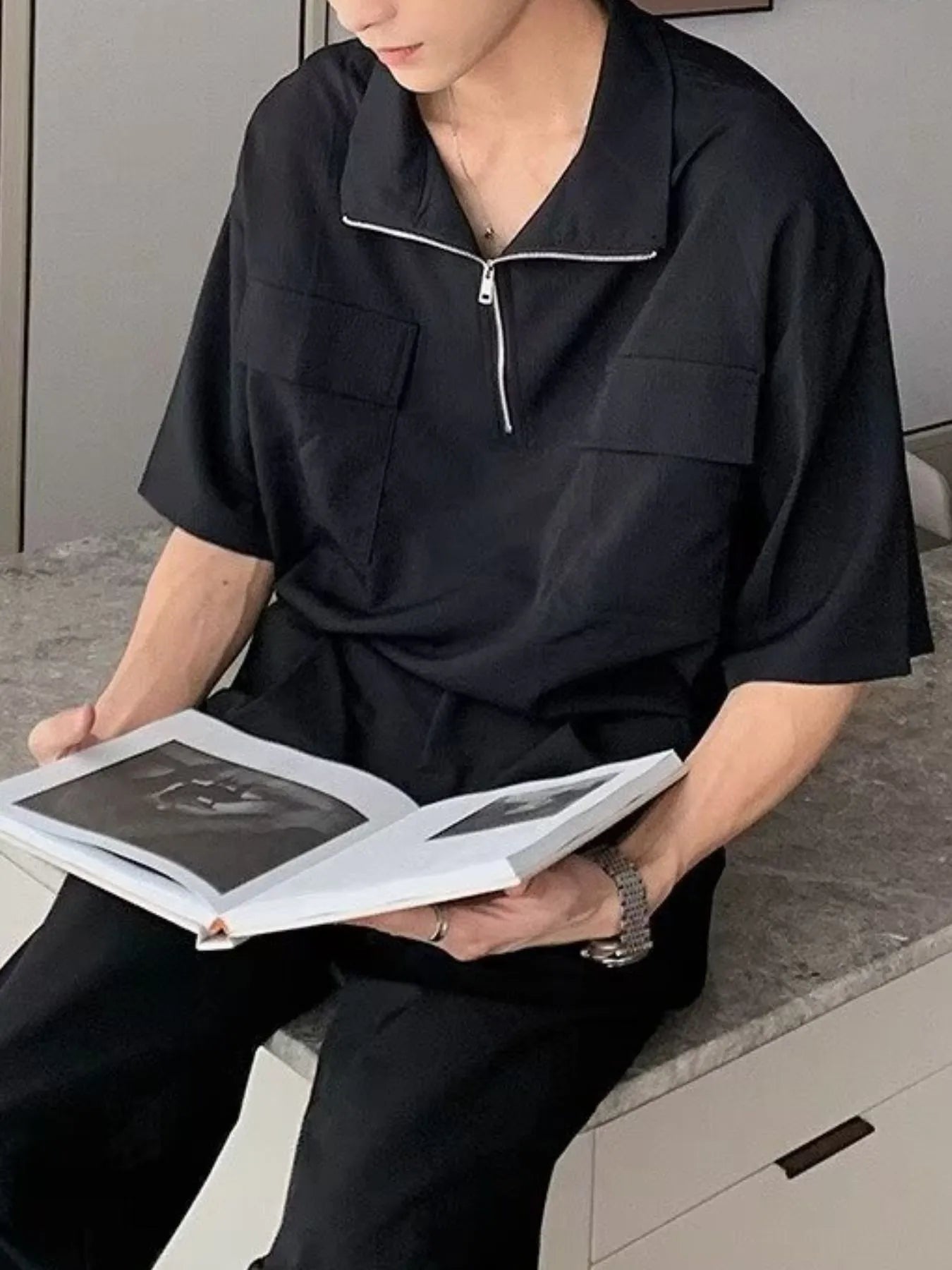 Home/Men Polo Shirts/Men's Plus Size Half-Zip Oversized Polo Shirt