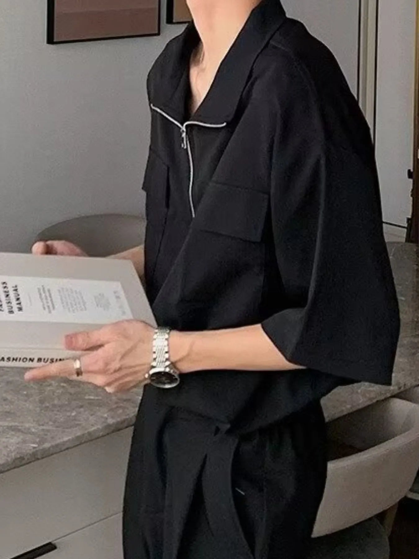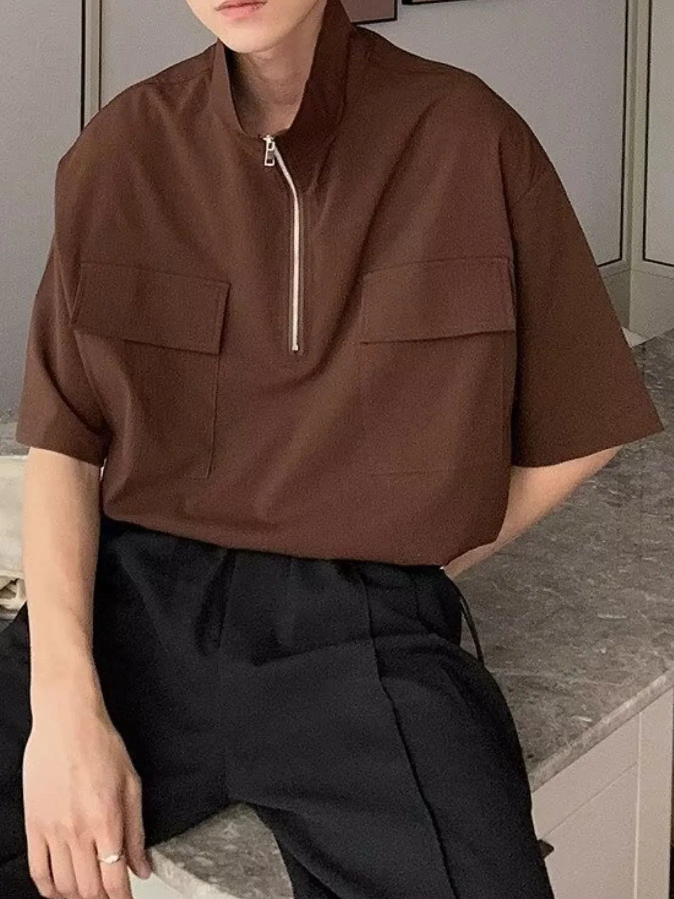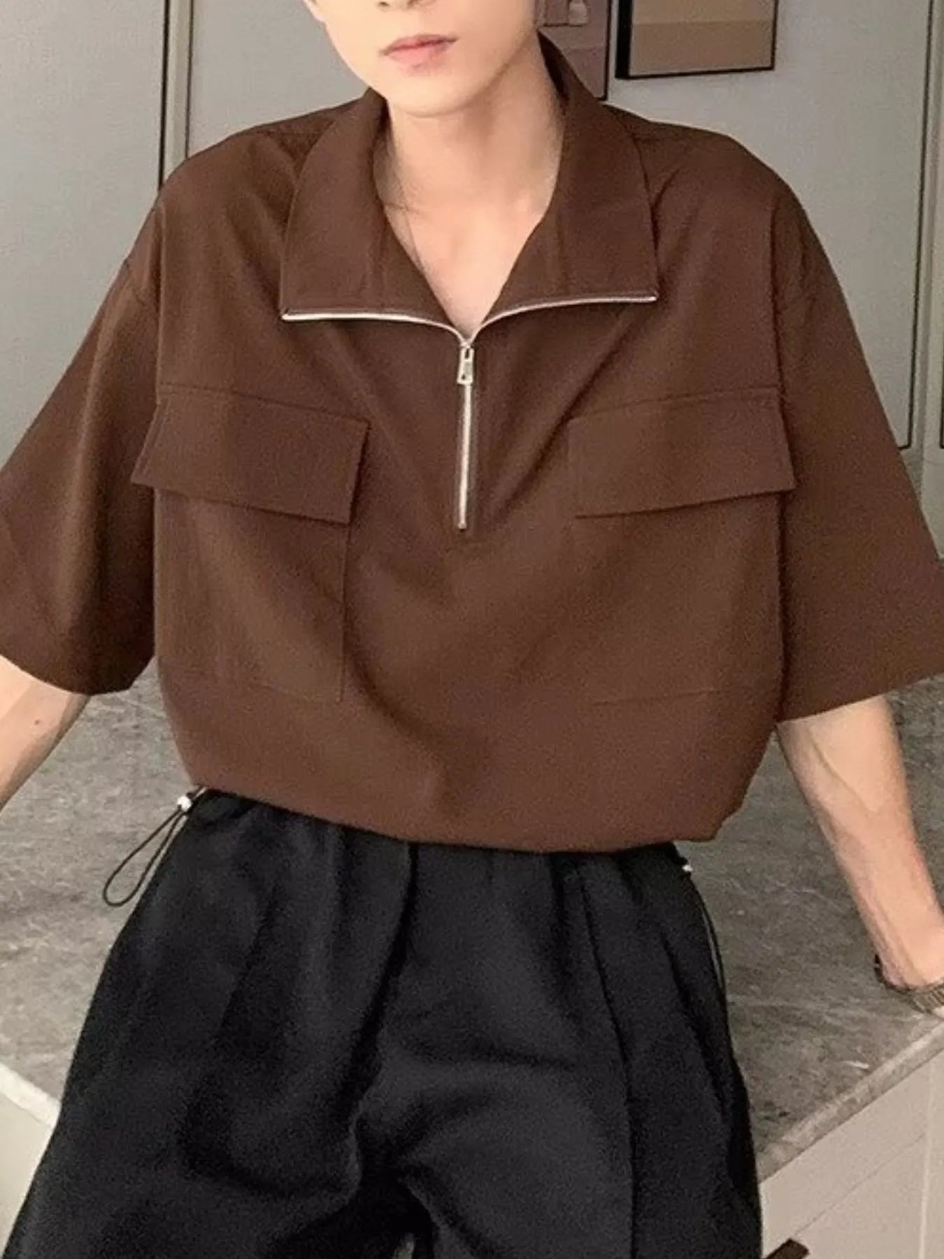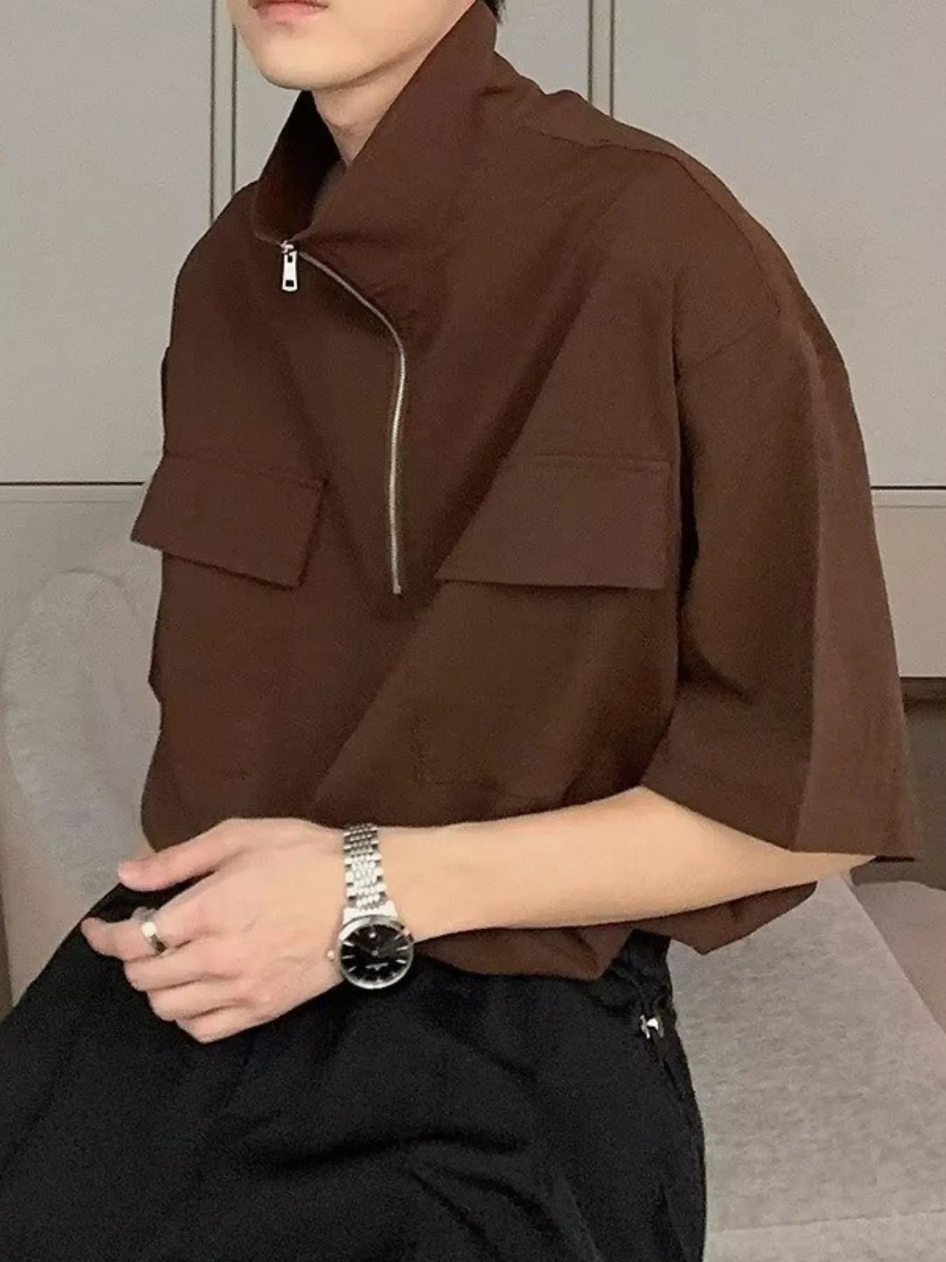 Home/Men Polo Shirts/Men's Plus Size Half-Zip Oversized Polo Shirt