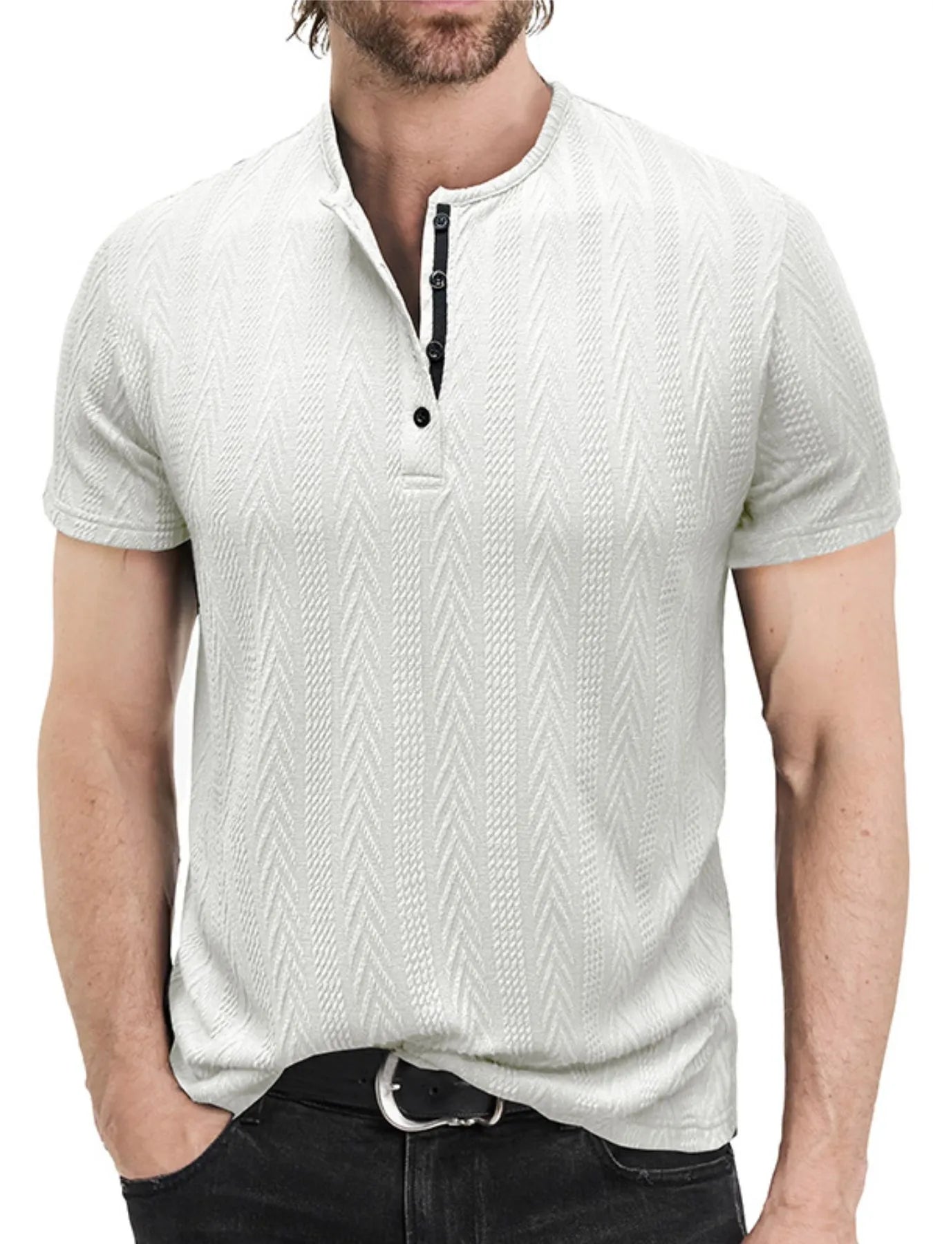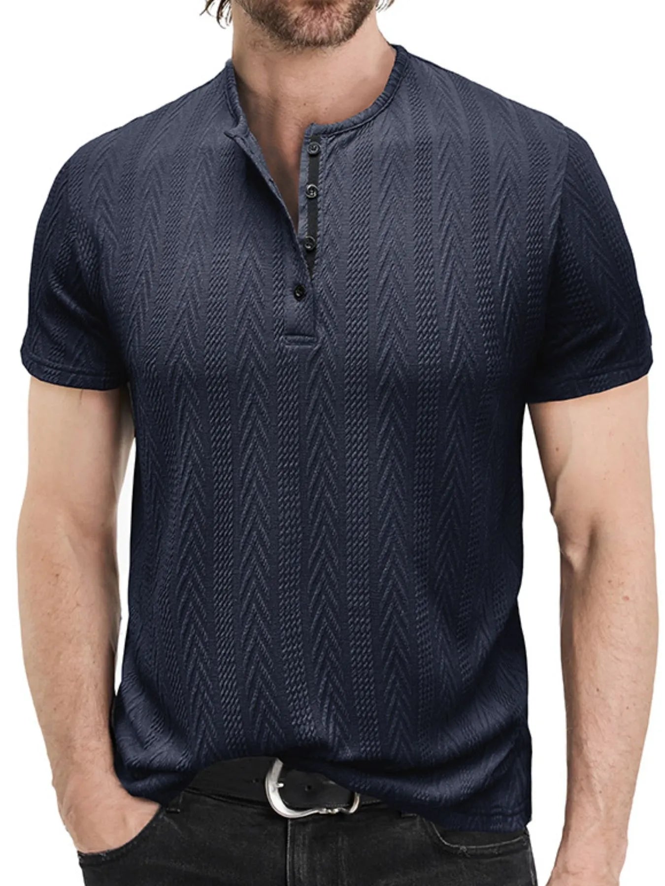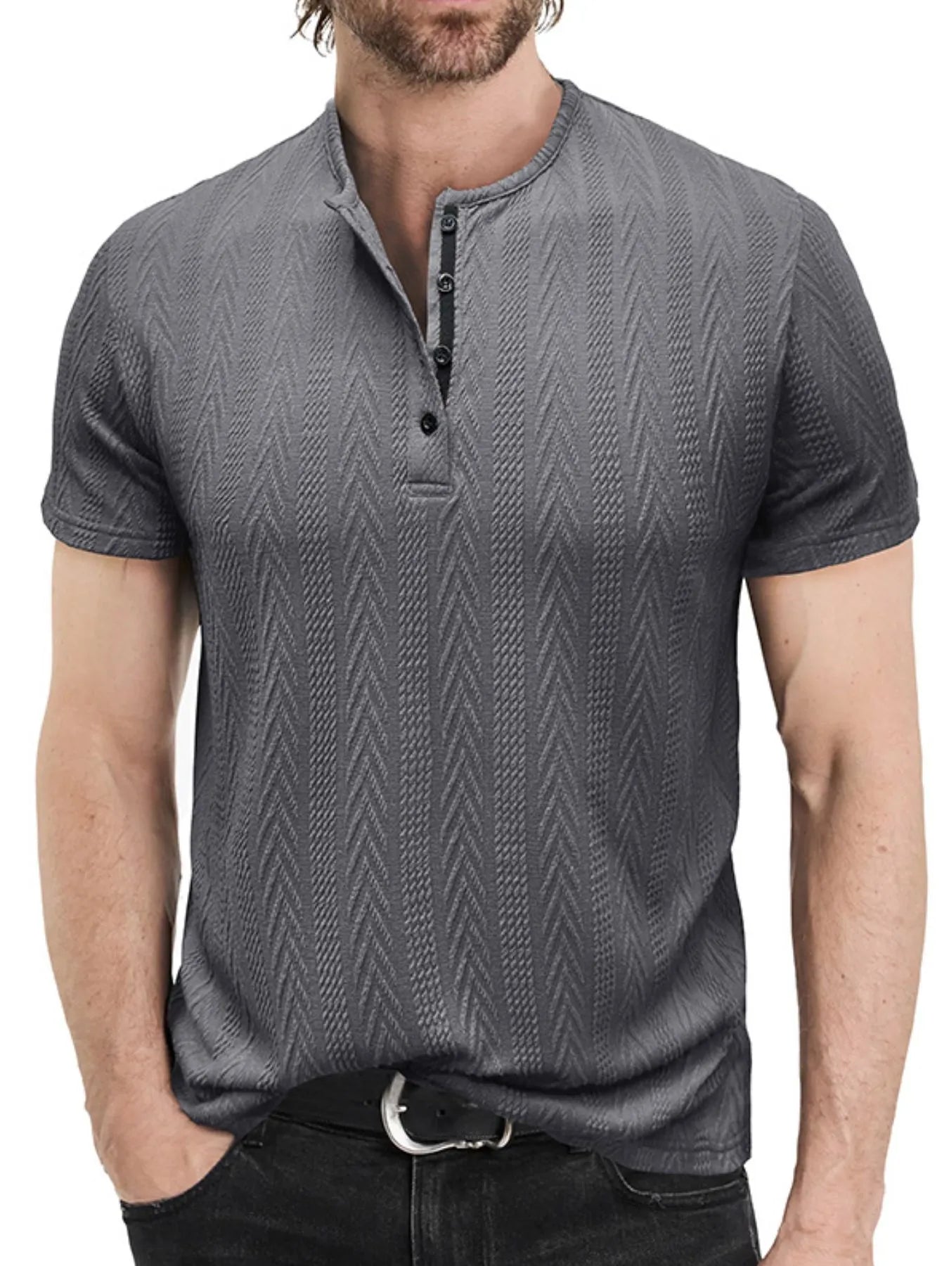 Men's Textured Chevron Pattern Henley Polo Shirt
