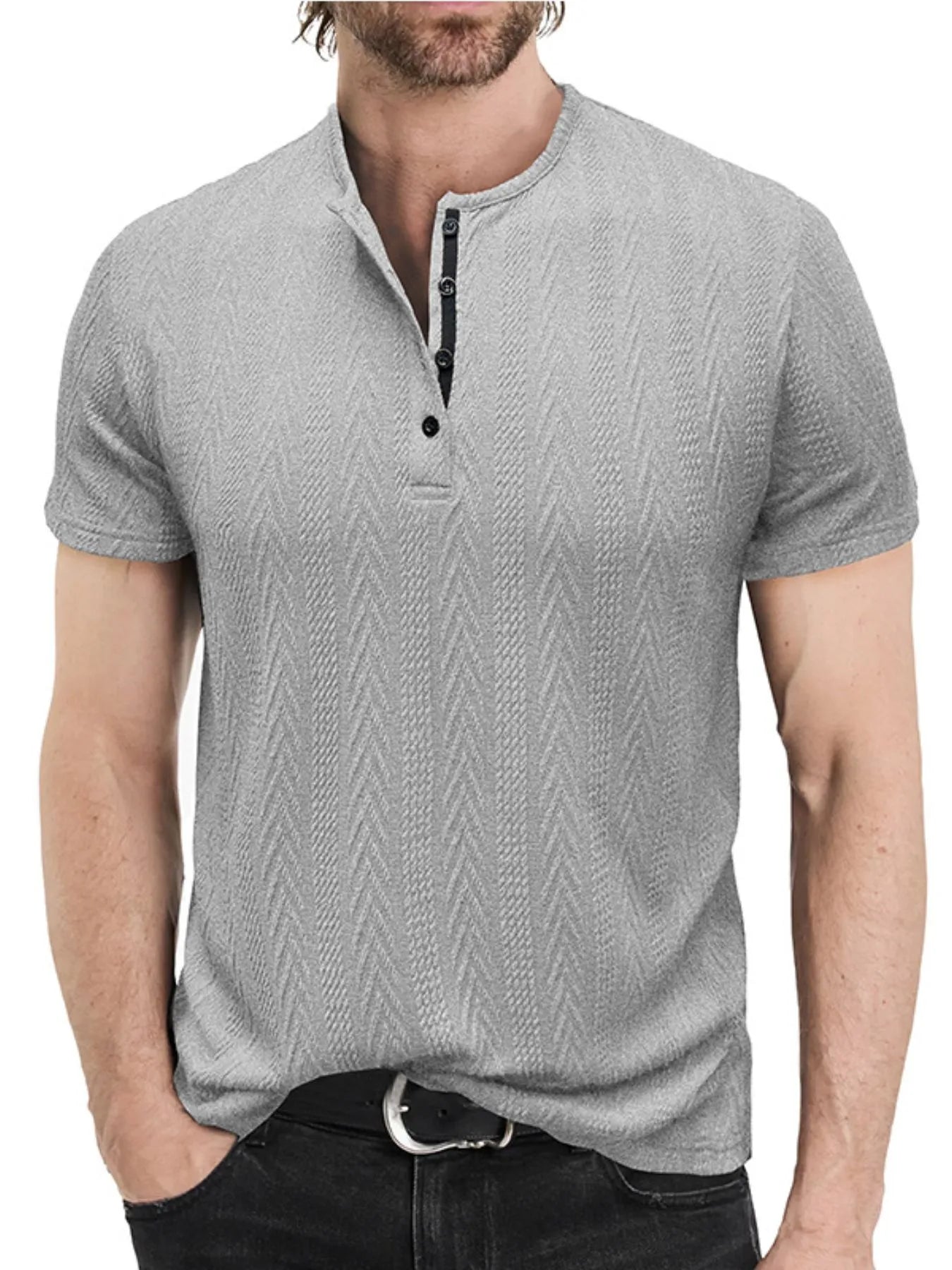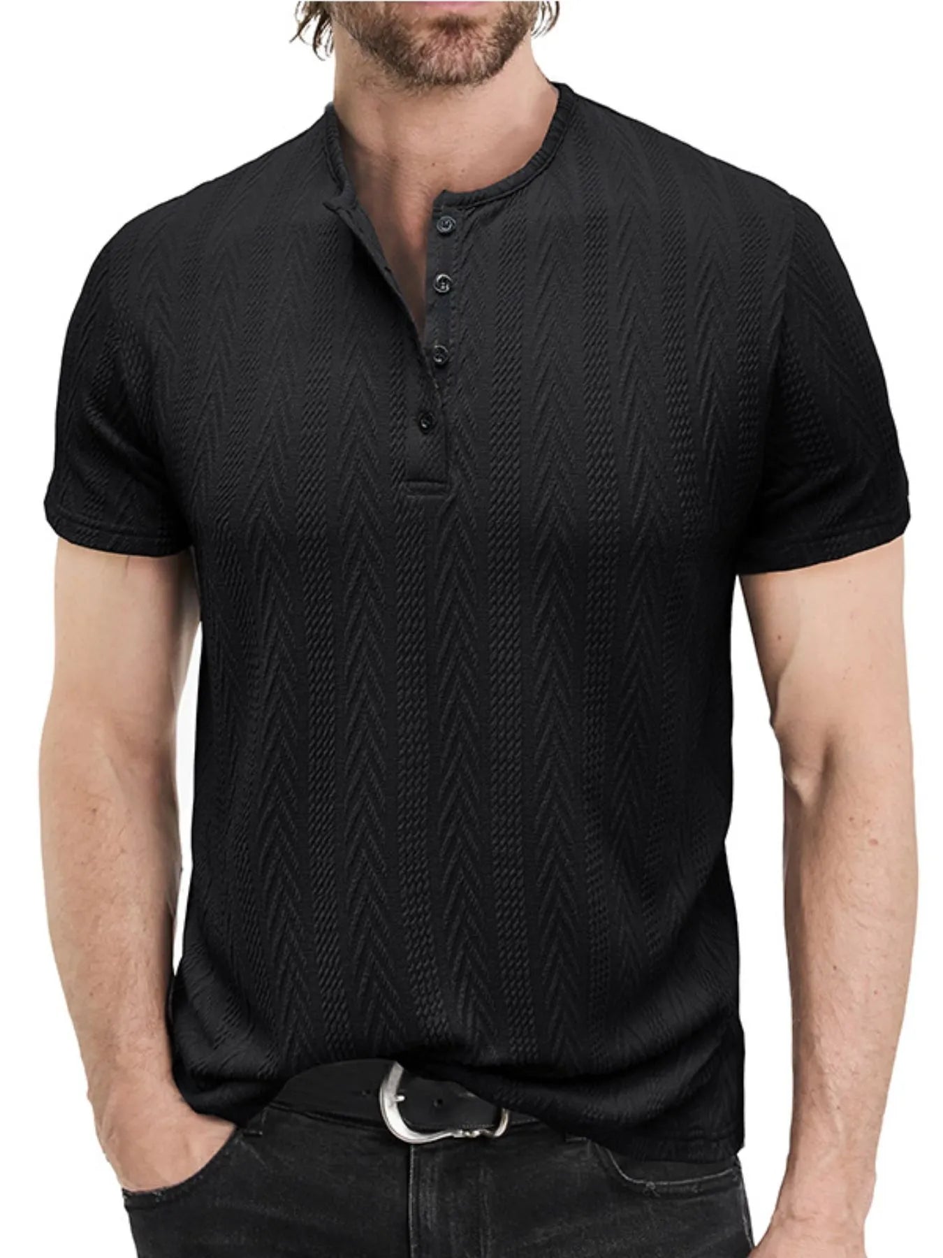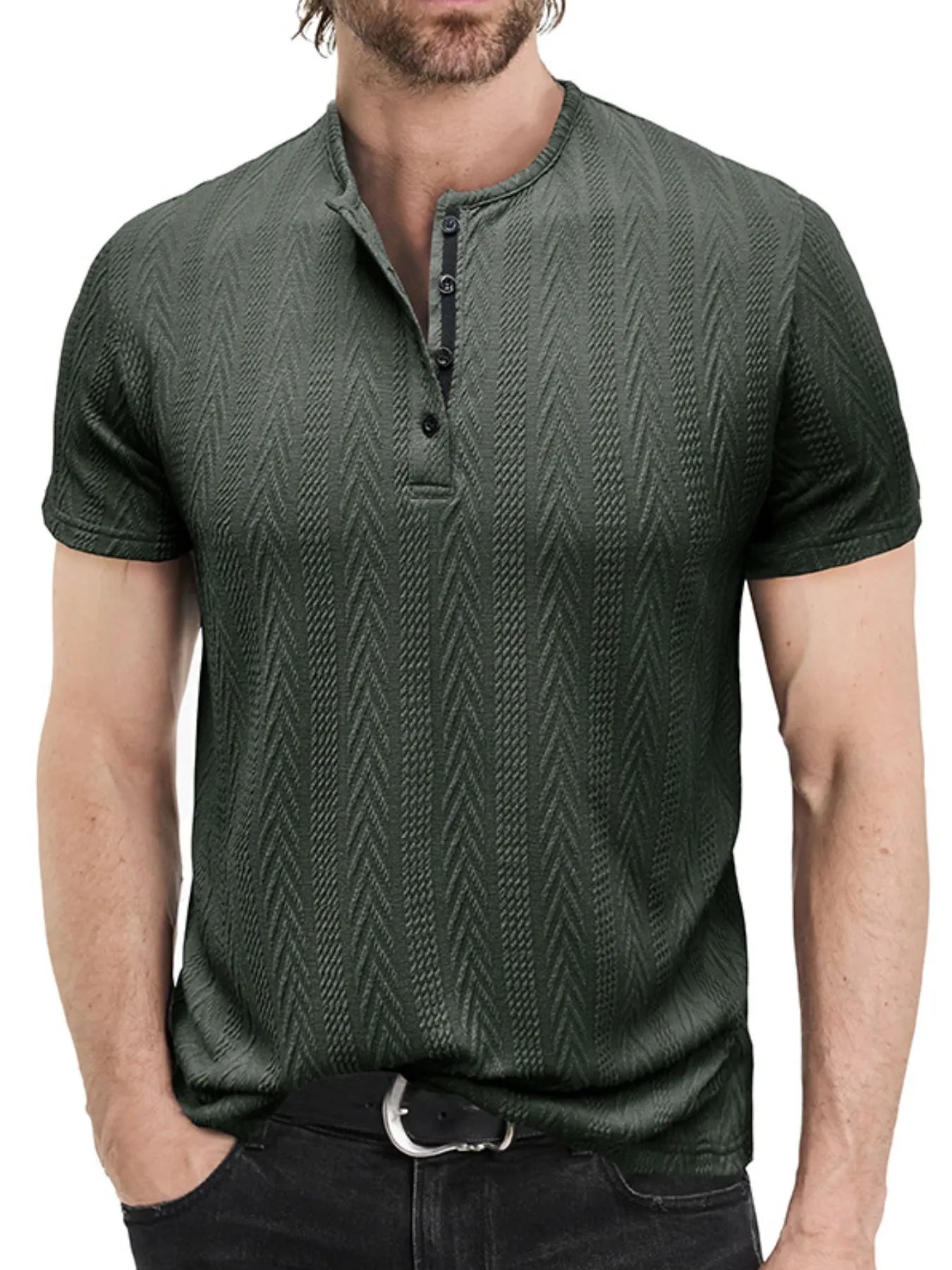 Men's Textured Chevron Pattern Henley Polo Shirt