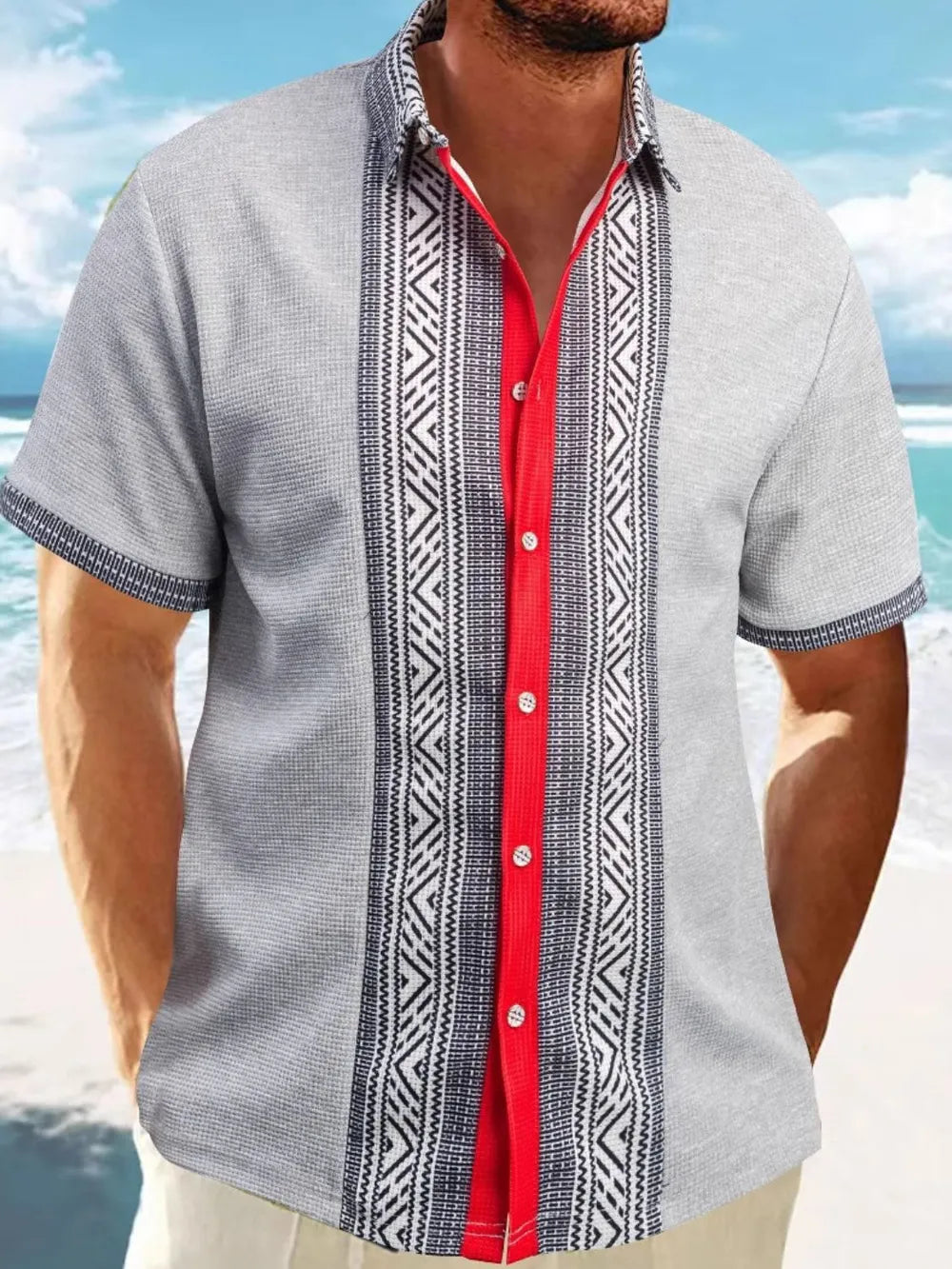 Men's Full Size Contrast Button Down Short Sleeve Shirt Plus Size