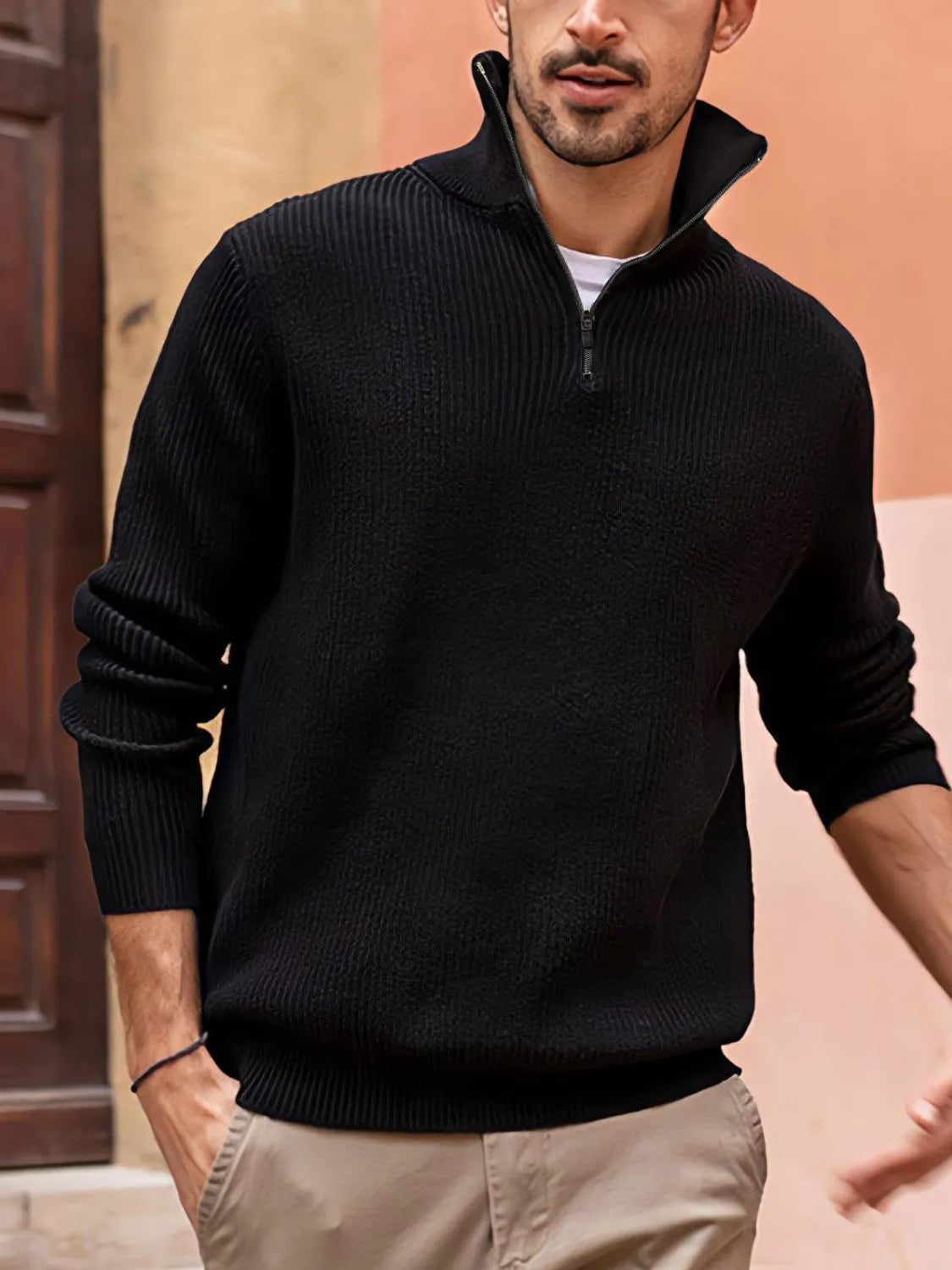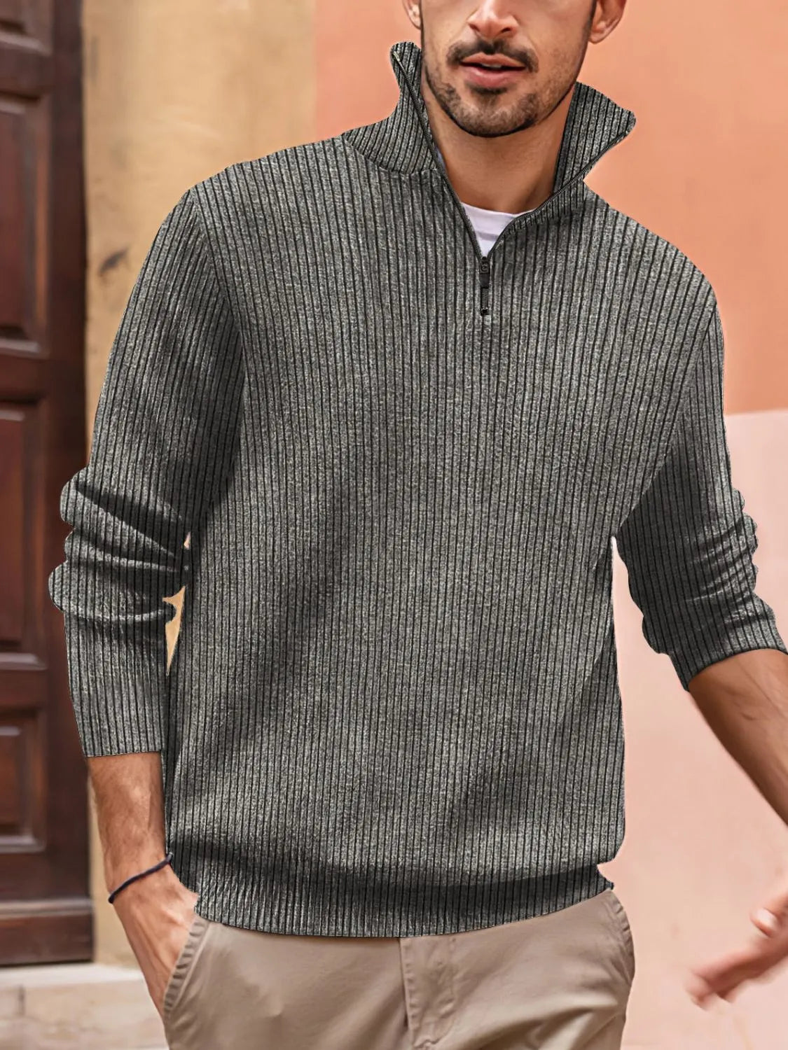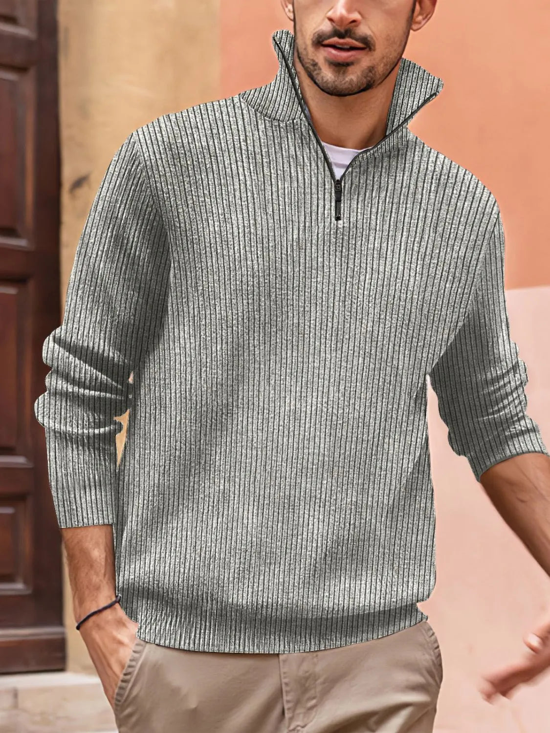 Men's Full Size Quarter Zip Long Sleeve Top Plus Size