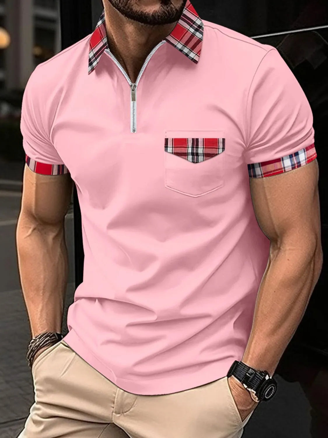 Men's Full Size Zip Collar Short Sleeve Polo Plus Size