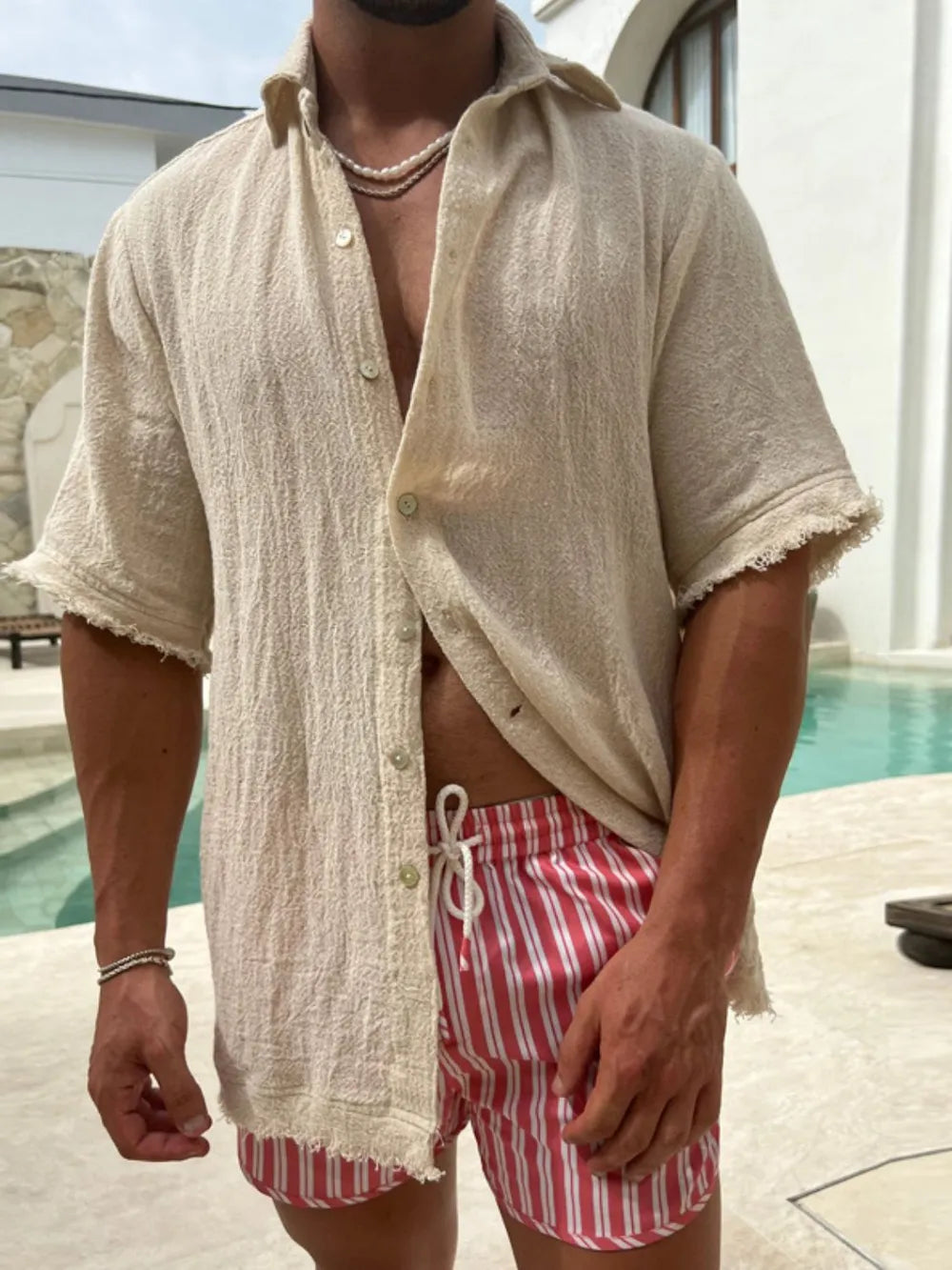 Men's Plus Size Raw Hem Button Down Collared Neck Shirt
