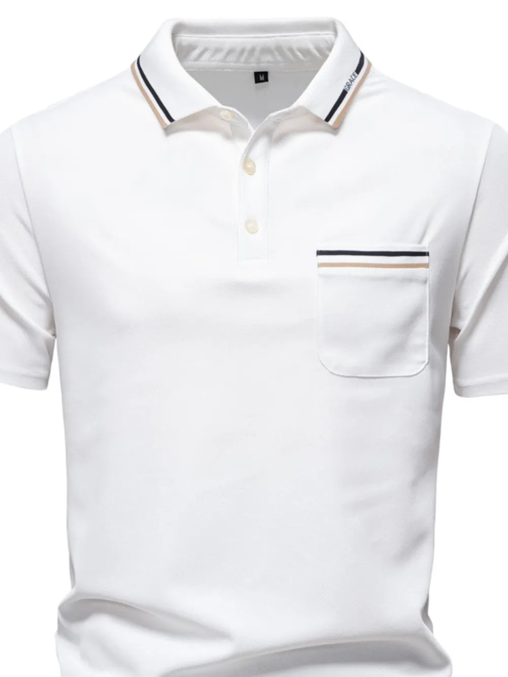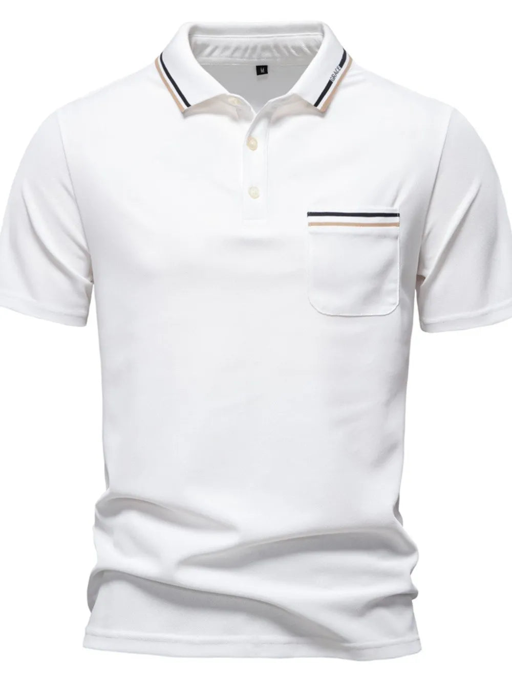 Home/Men Shirts/Men's Short Sleeve Collared Neck Striped Polo
