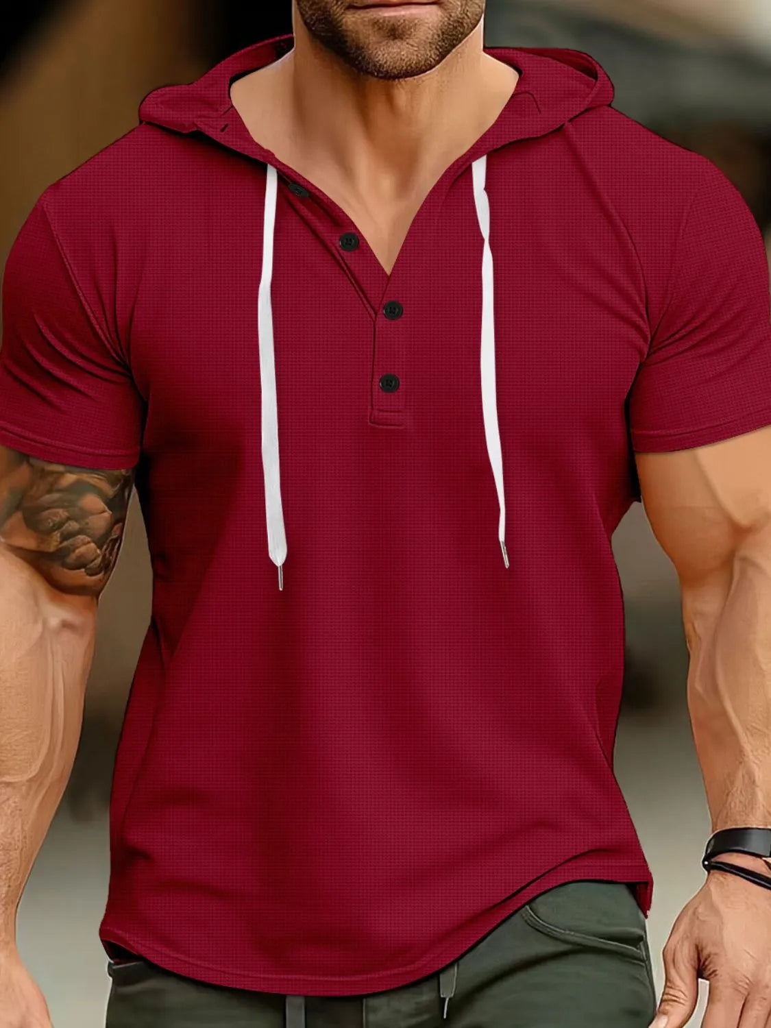 Men's Full Size Drawstring Short Sleeve Hooded Top Plus Size